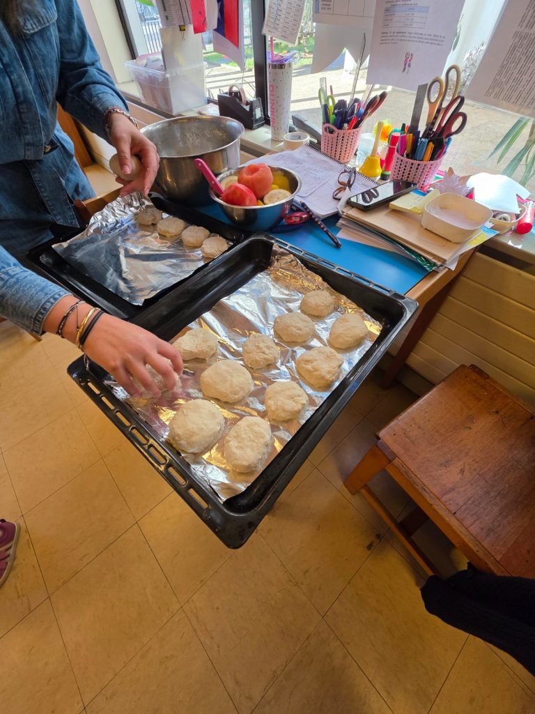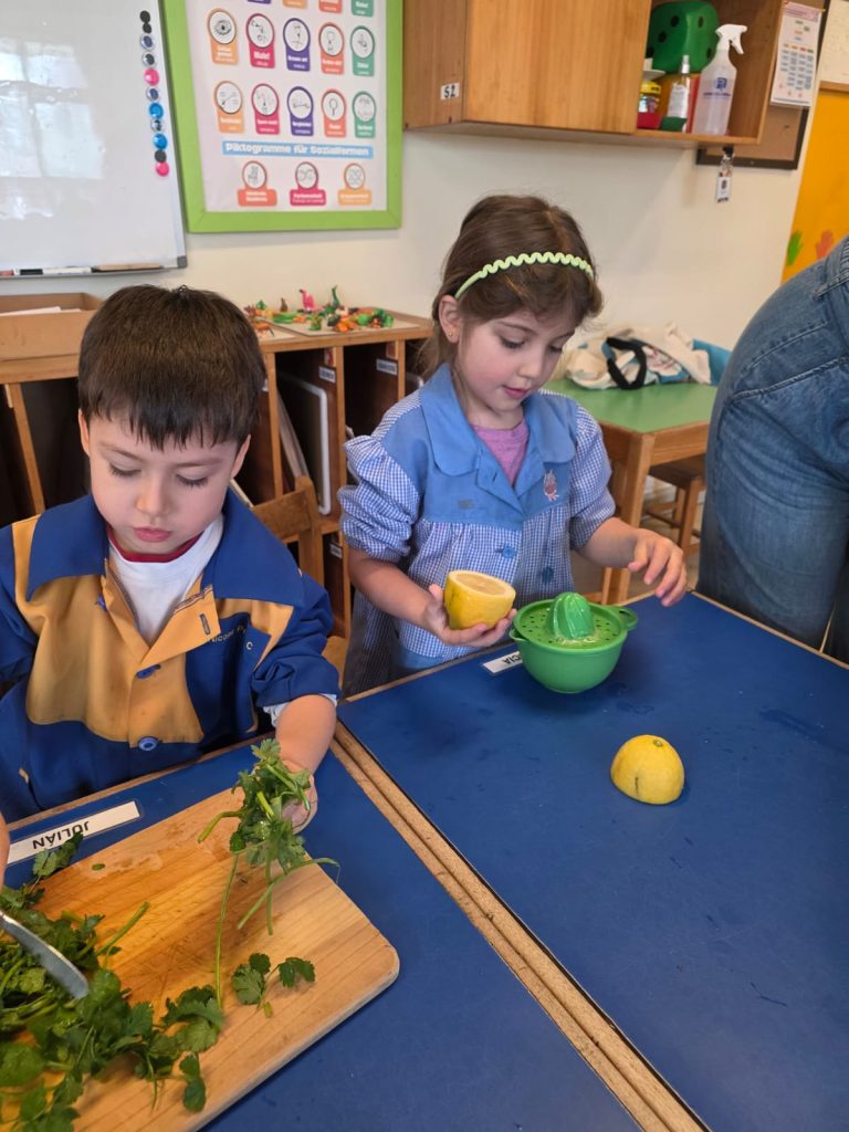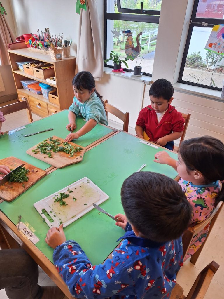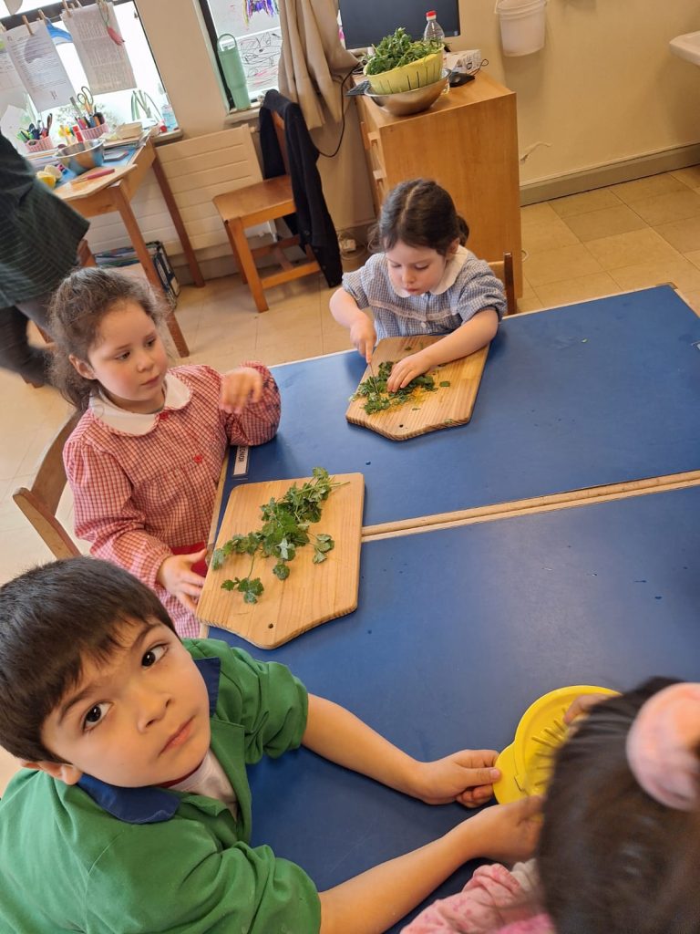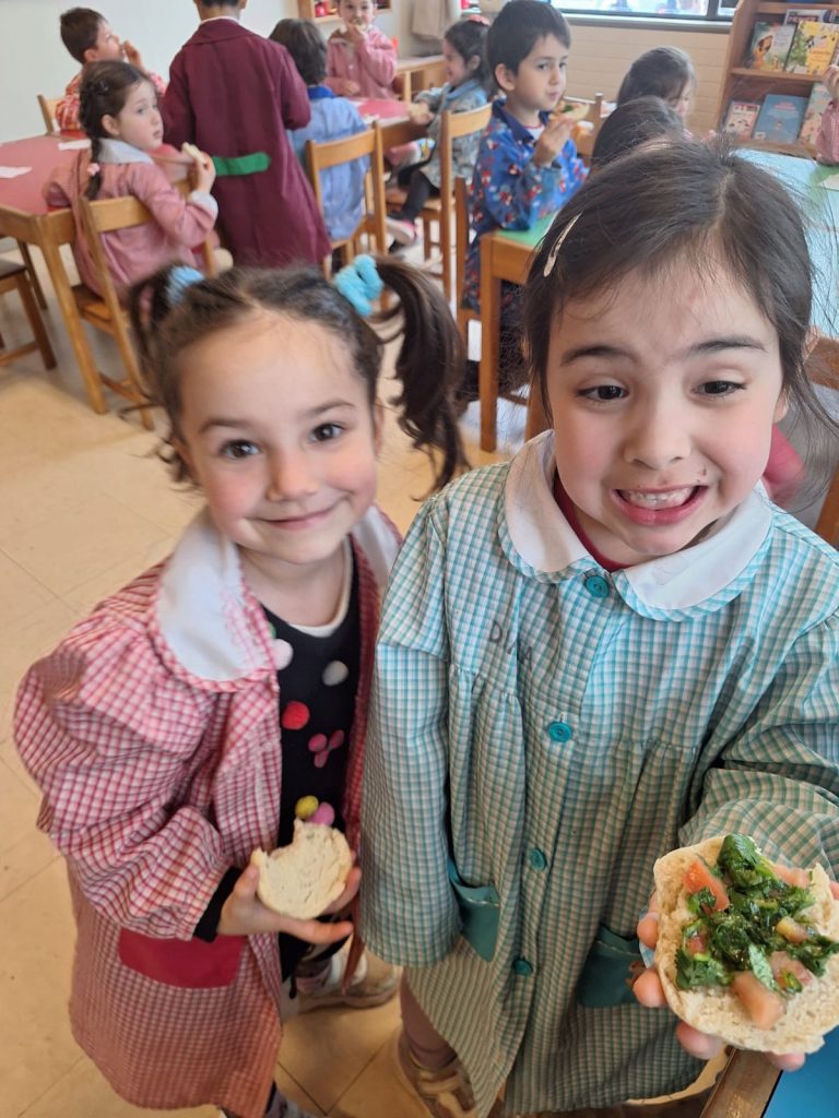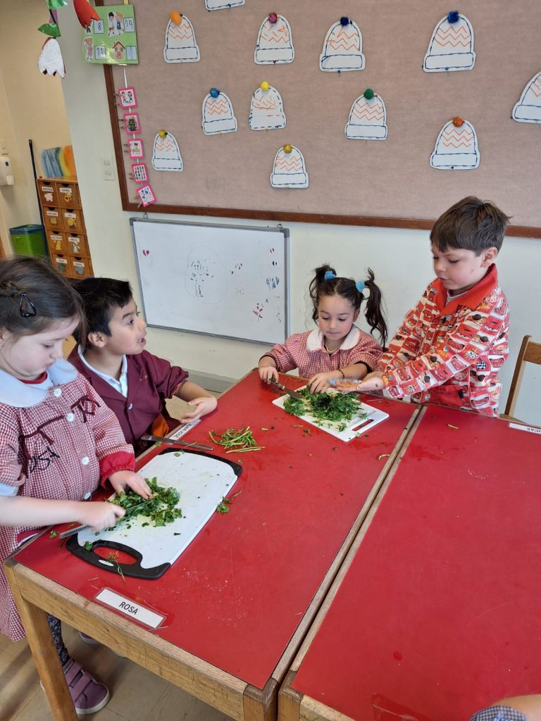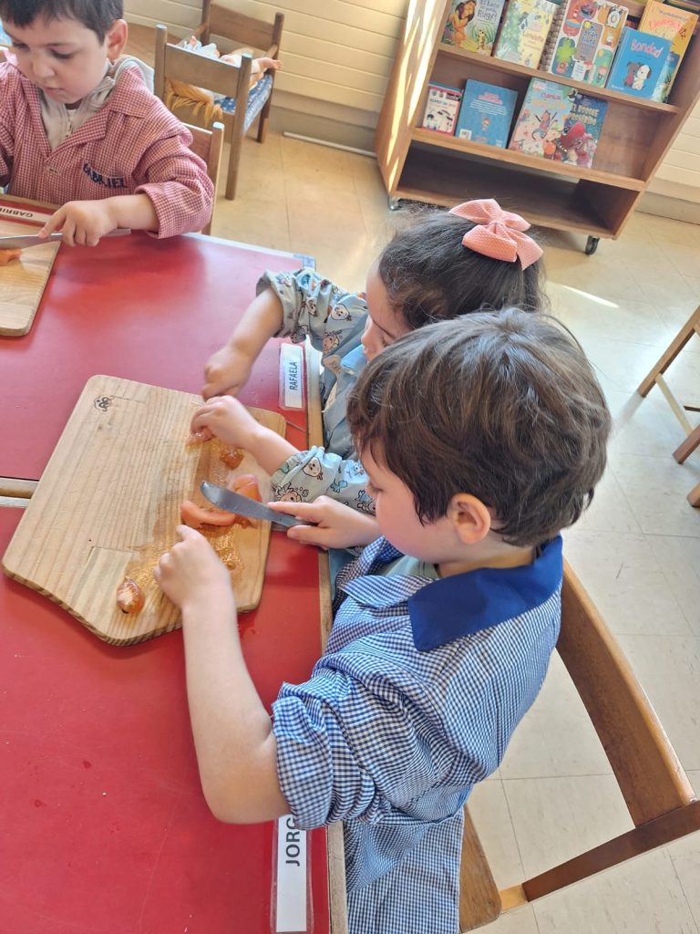 La jornada se desarrolló en dependencias del Preescolar, donde los estudiantes elaboraron pan amasado y pebre siguiendo las indicaciones de sus educadoras. La experiencia buscó acercarlos a tradiciones gastronómicas chilenas y fomentar el trabajo colaborativo.