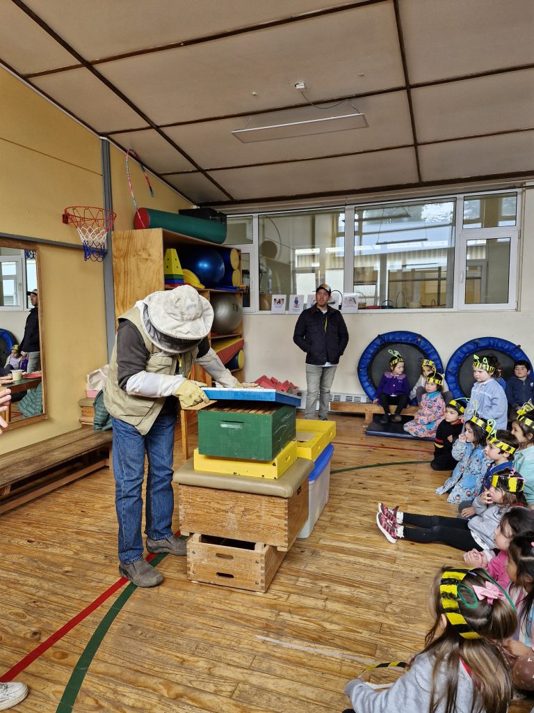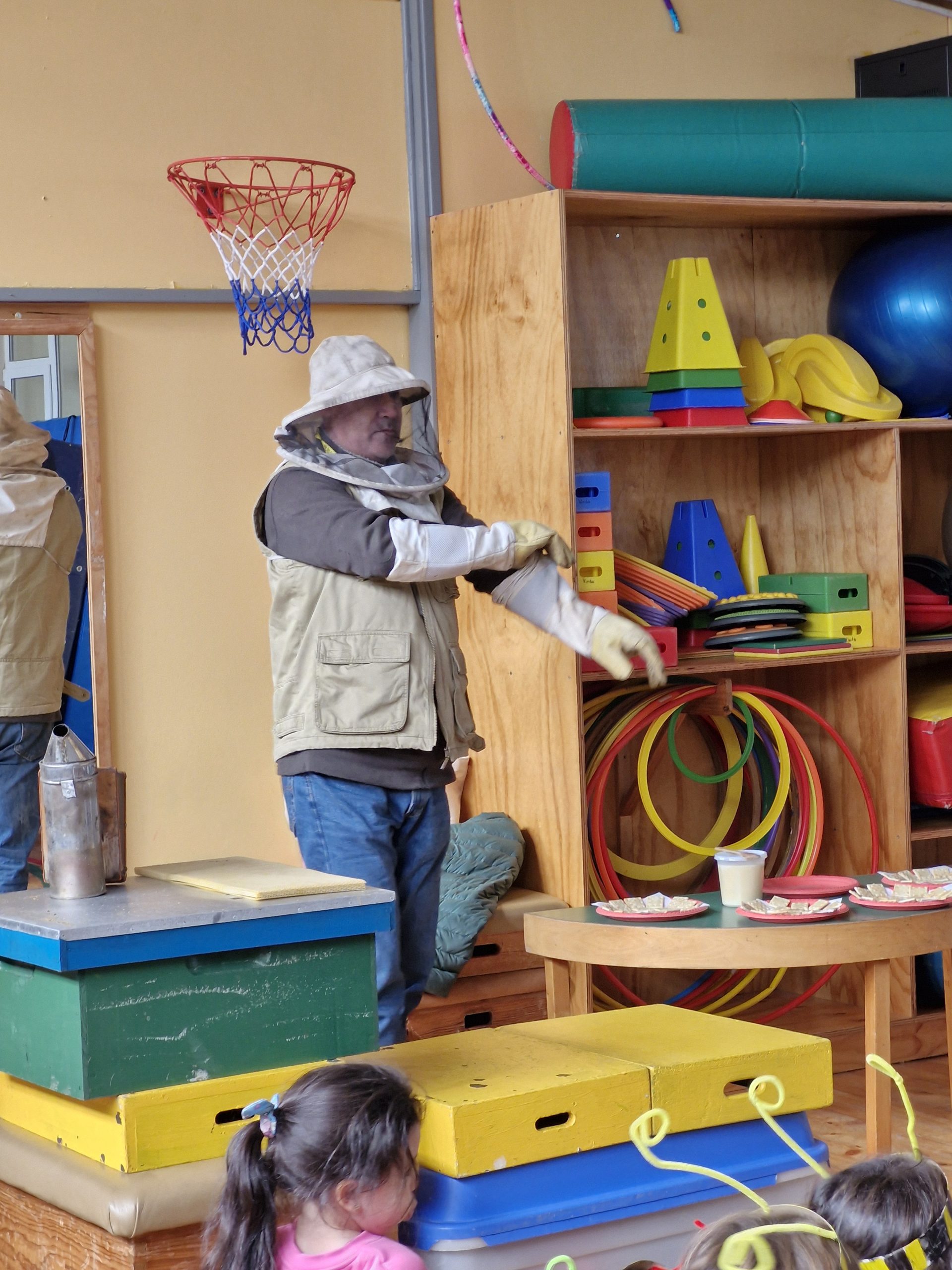 El martes 20 de mayo, en el marco del Día Mundial de las Abejas, se realizó una significativa actividad en las dependencias del Preescolar de nuestro Instituto. La jornada fue organizada por las educadoras del nivel Prekinder y contó con la activa participación de apoderados del curso Prekinder 2, quienes prepararon una muestra centrada en el cuidado y la cría de las abejas.