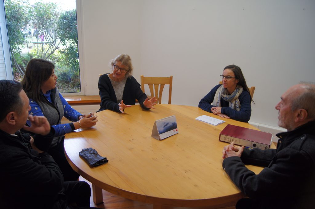 De ellos, el Grupo Gestor eligió a los tres primeros lugares, que esta mañana se reunieron con la Rectora, Liske Salden, y la presidente del Grupo Gestor, profesora Liliana Cárcamo.