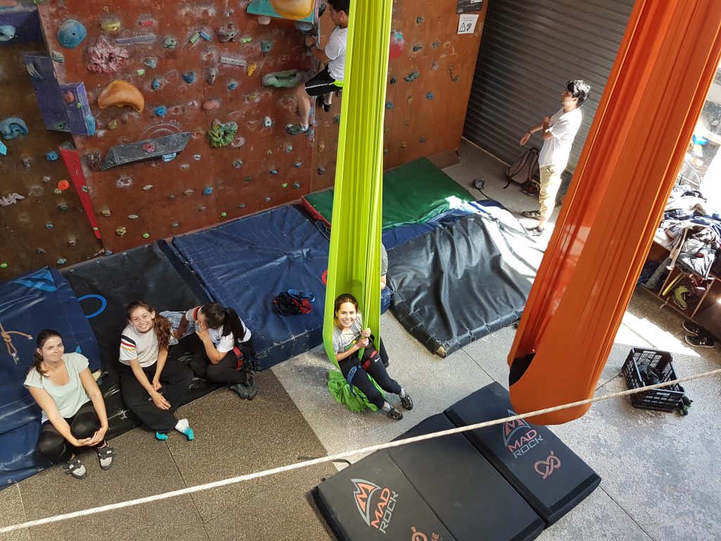 Para aquellos aficionados a las acrobacias en tela, también había disponibilidad de ellas, por lo que los alumnos lo pasaron muy bien, con la amable guía y ayuda de la dueña del local.