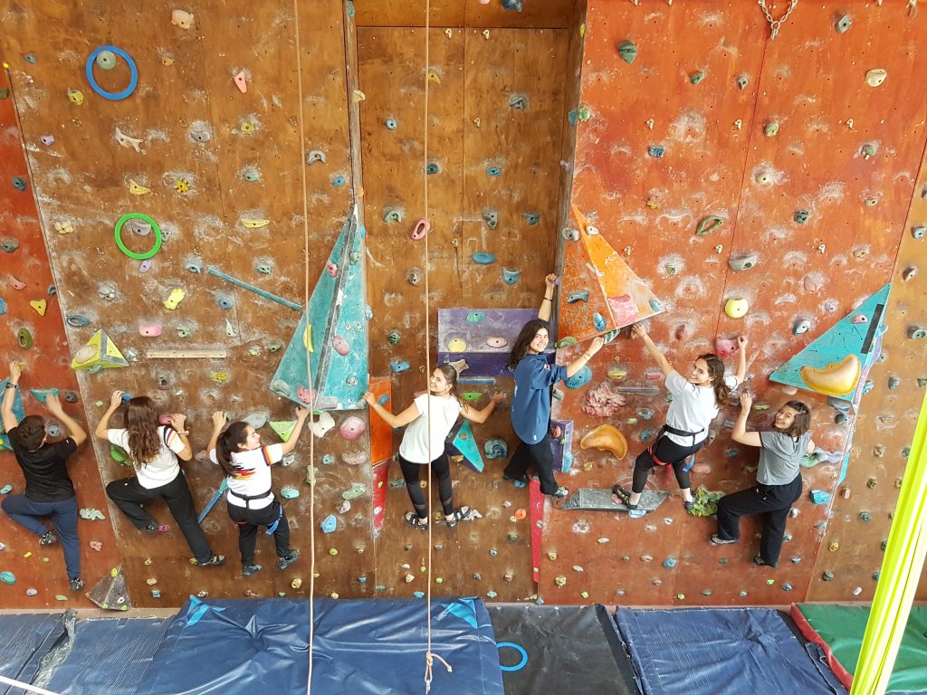 Luego de ello, se dirigieron al local de escalada “El Puelche”, en donde, después de un breve calentamiento previo e instrucciones de seguridad, comenzaron a escalar el muro de unos tres metros.