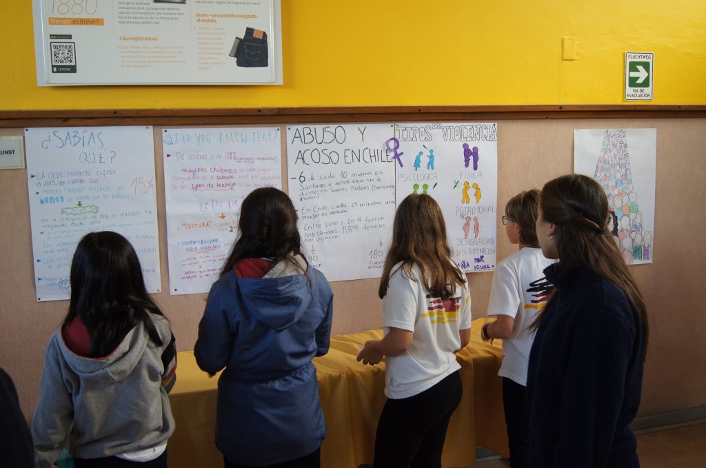 La profesora Gabriela Rojas, Jefe del Departamento de Lenguaje y Comunicación, se refirió a la actividad y a la muestra de trabajos instalada en el Fórum de Educación Media como una oportunidad de investigación para los alumnos de III medios que los desarrollaron, así como también para sus compañeros que pueden revisar la información, para comprender el contexto histórico de esta conmemoración y estar informados con lo que sucede en la actualidad.