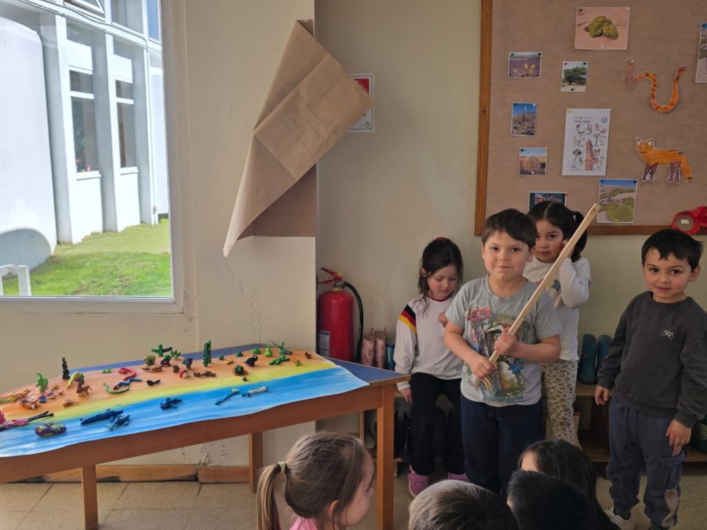 Prekinder 1 expuso sobre el relieve y el clima del norte de Chile; Prekinder 2 presentó contenidos sobre fauna y flora; y Prekinder 3 abordó a los pueblos originarios diaguitas y changos. Cada curso preparó materiales y explicaciones adecuadas a su nivel, promoviendo la expresión oral y el aprendizaje significativo.