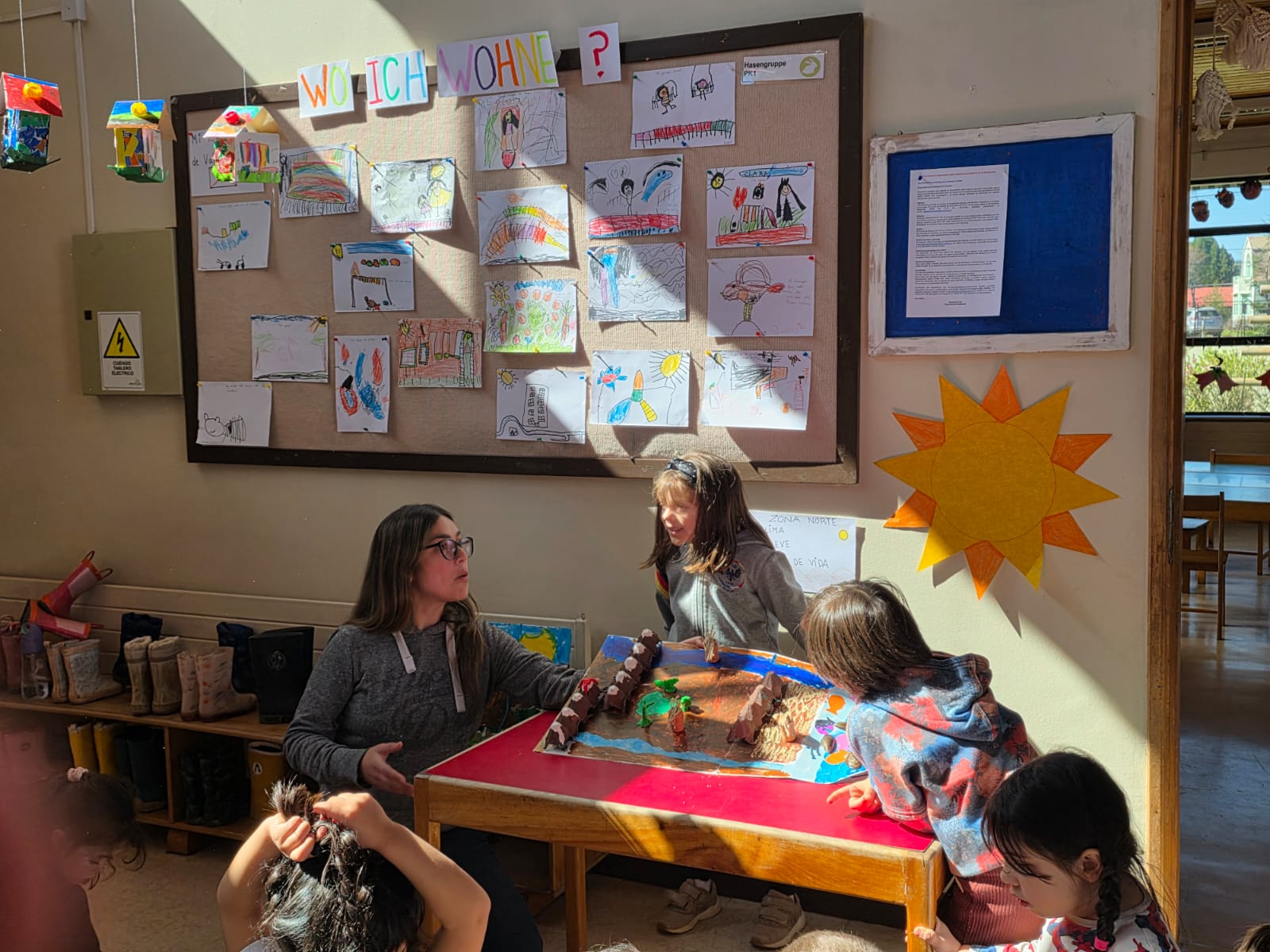 08.09.2025 En el hall de Prekinder, los tres cursos del nivel compartieron sus investigaciones en el marco de Fiestas Patrias y la unidad “Wo ich wohne” (Donde vivo).