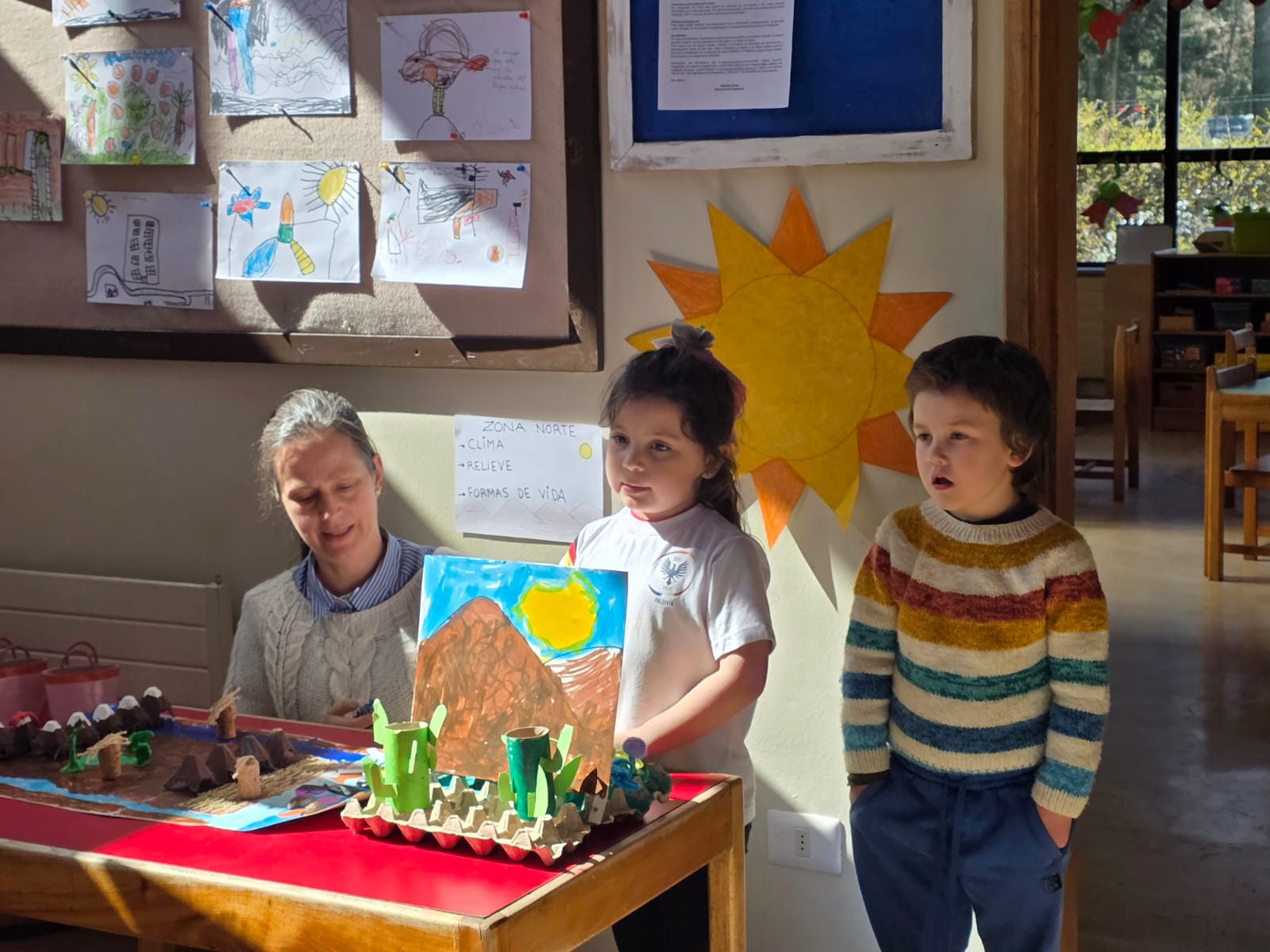 Prekinder 1 expuso sobre el relieve y el clima del norte de Chile; Prekinder 2 presentó contenidos sobre fauna y flora; y Prekinder 3 abordó a los pueblos originarios diaguitas y changos. Cada curso preparó materiales y explicaciones adecuadas a su nivel, promoviendo la expresión oral y el aprendizaje significativo.