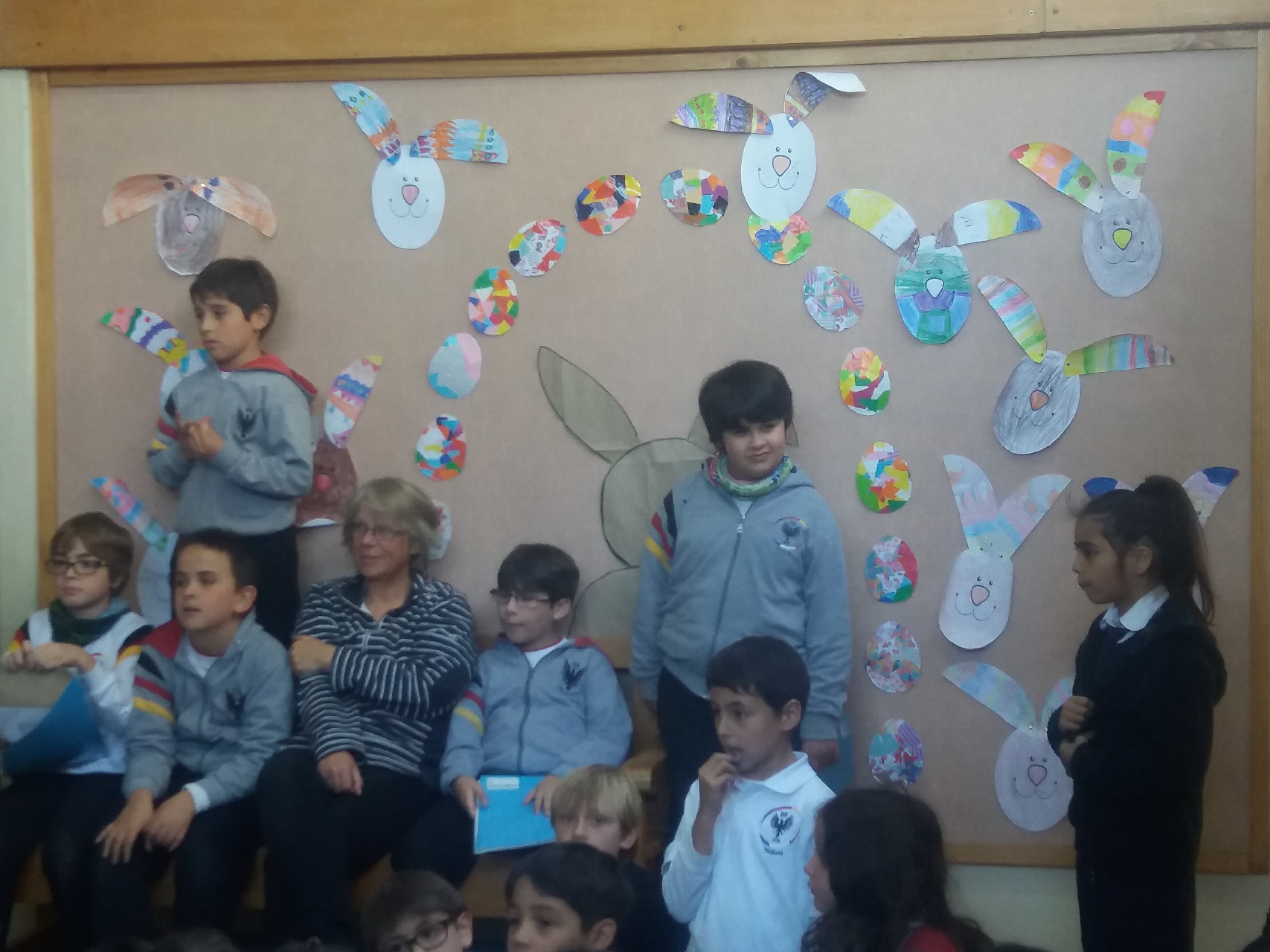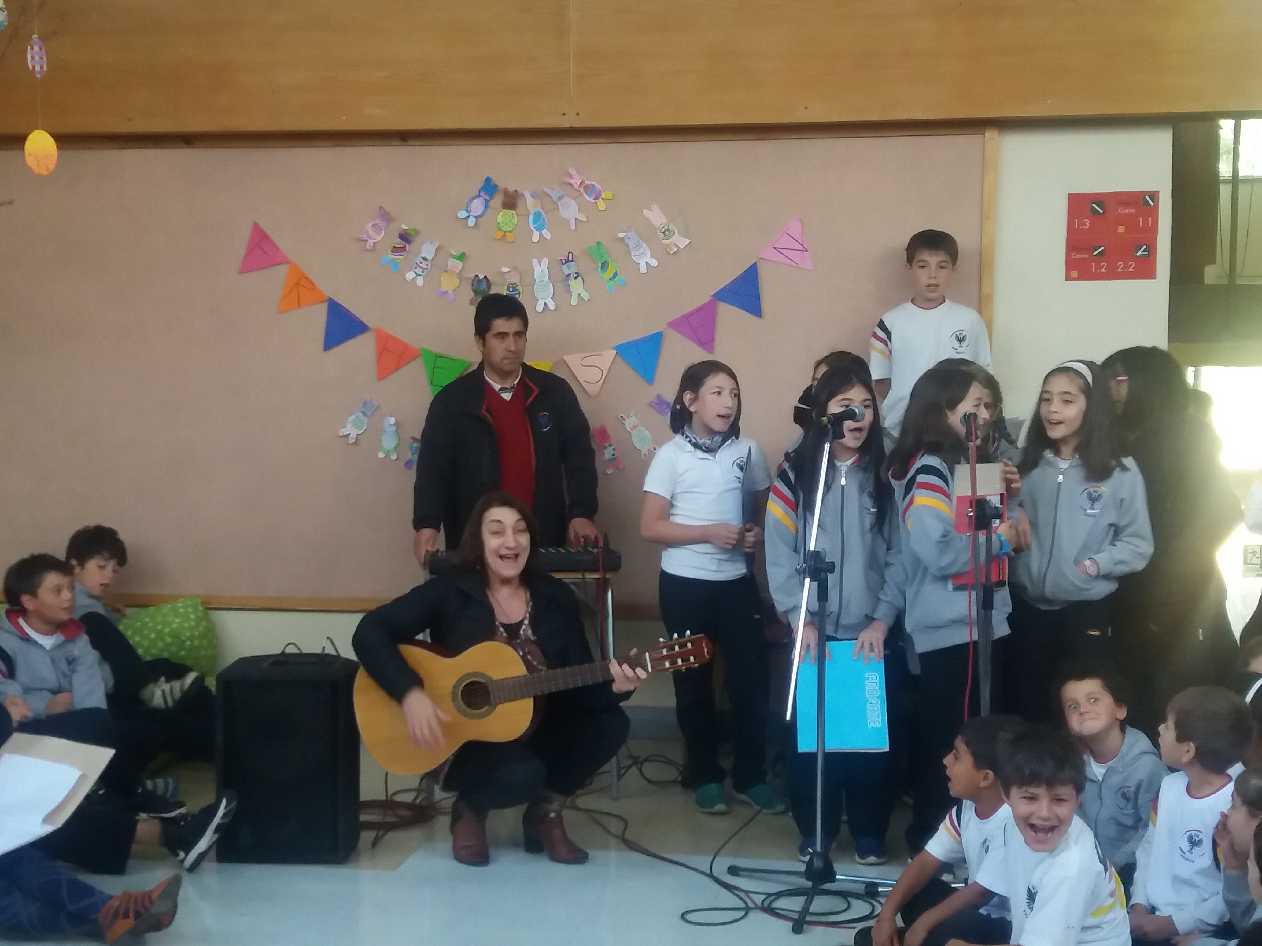 En el hall de Educación Básica, los estudiantes y sus profesores del Primer Ciclo Básico cantaron temas en castellano y alemán con motivo de la celebración de Pascua de Resurrección y, por supuesto, el tradicional Conejo de Pascua.
