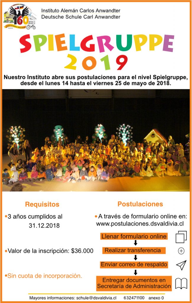 El lunes 14 se abre el proceso de postulación al nivel Spielgruppe 2019, para niños que cuenten con 3 años al 31 de diciembre de 2018.