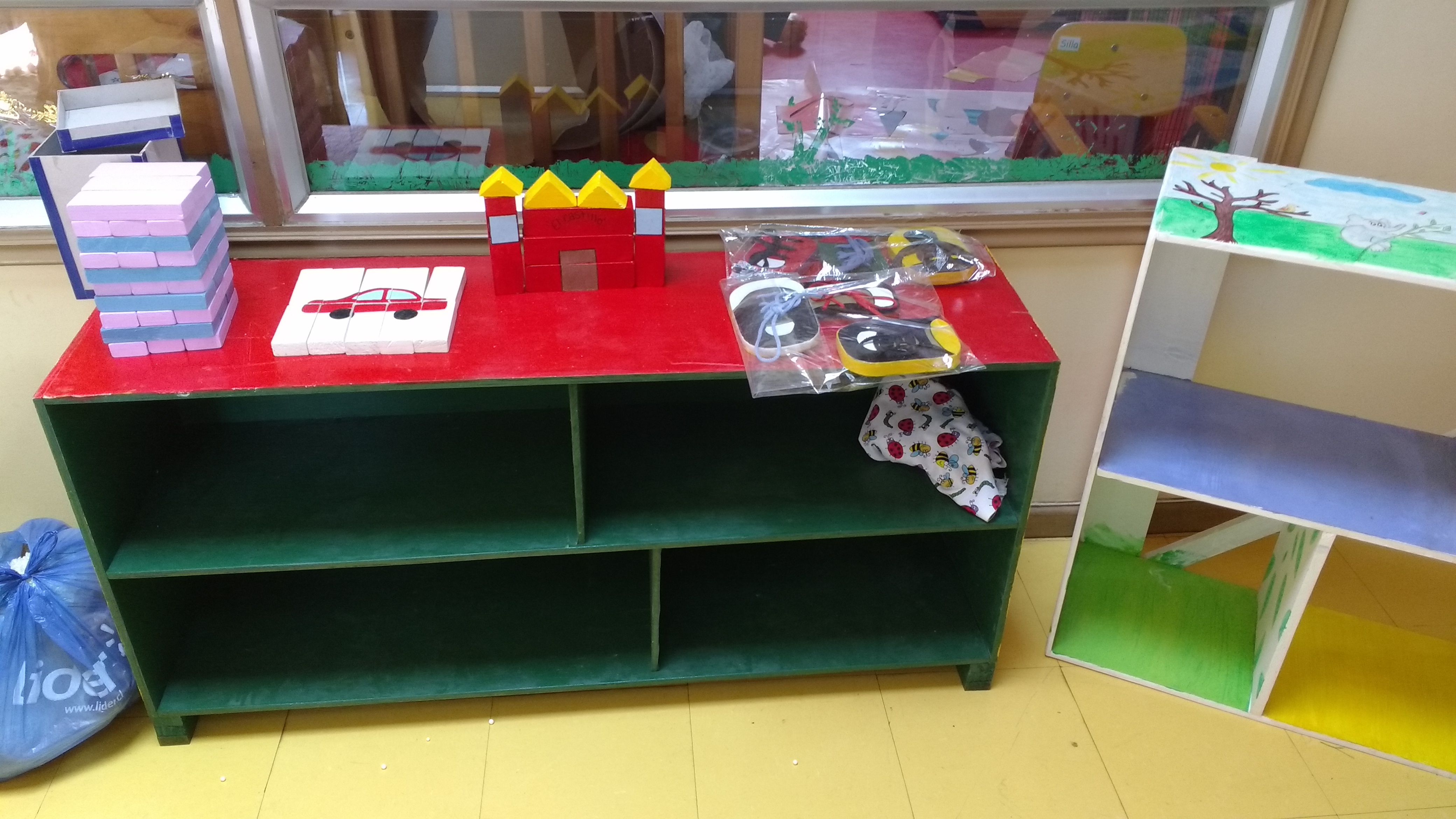 La decisión se materializó en la realización de repisas y cajones para guardar materiales, juegos didácticos como yengas y puzzles, pizarras individuales, entre otros elementos. Un grupo de alumnos aprendió a coser a máquina para confeccionar un asiento como los que existen en la biblioteca de nuestro Instituto.