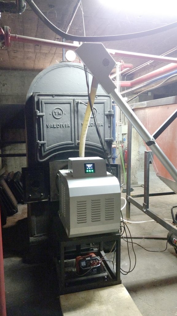 El quemador de pellets que alimenta desde el lunes 24 a la caldera del gimnasio antiguo entrega energía para la calefacción de los dos gimnasios del colegio y para el agua caliente de las duchas de los camarines. Es un modelo Bmax Three de 300 kw de la empresa italiana Bmax Technology. El representante local instaló el equipo y la tolva de combustible necesaria para mantener el stock adecuado de pellets, y además cuenta con un sinfín alimentador computarizado. El equipo es completamente autónomo; funciona con encendido automático y control de temperatura. Su funcionamiento estará en observación durante los próximos tres meses y, si no se presentan inconvenientes mayores, se procederá a adaptar la caldera principal del colegio con el mismo combustible, lo que constituiría la segunda etapa de esta iniciativa por un aire más limpio, para la eliminación de la emisión del material particulado y el humo, cuya implementación se finalizaría en un año y medio.