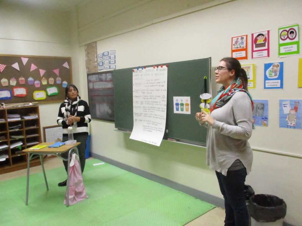 A continuación, Carolina Sánchez, Educadora, y Marés González, profesora de E. Básica, del equipo de Articulación, mostraron una presentación con la descripción del trabajo de articulación entre los dos niveles y sus objetivos.