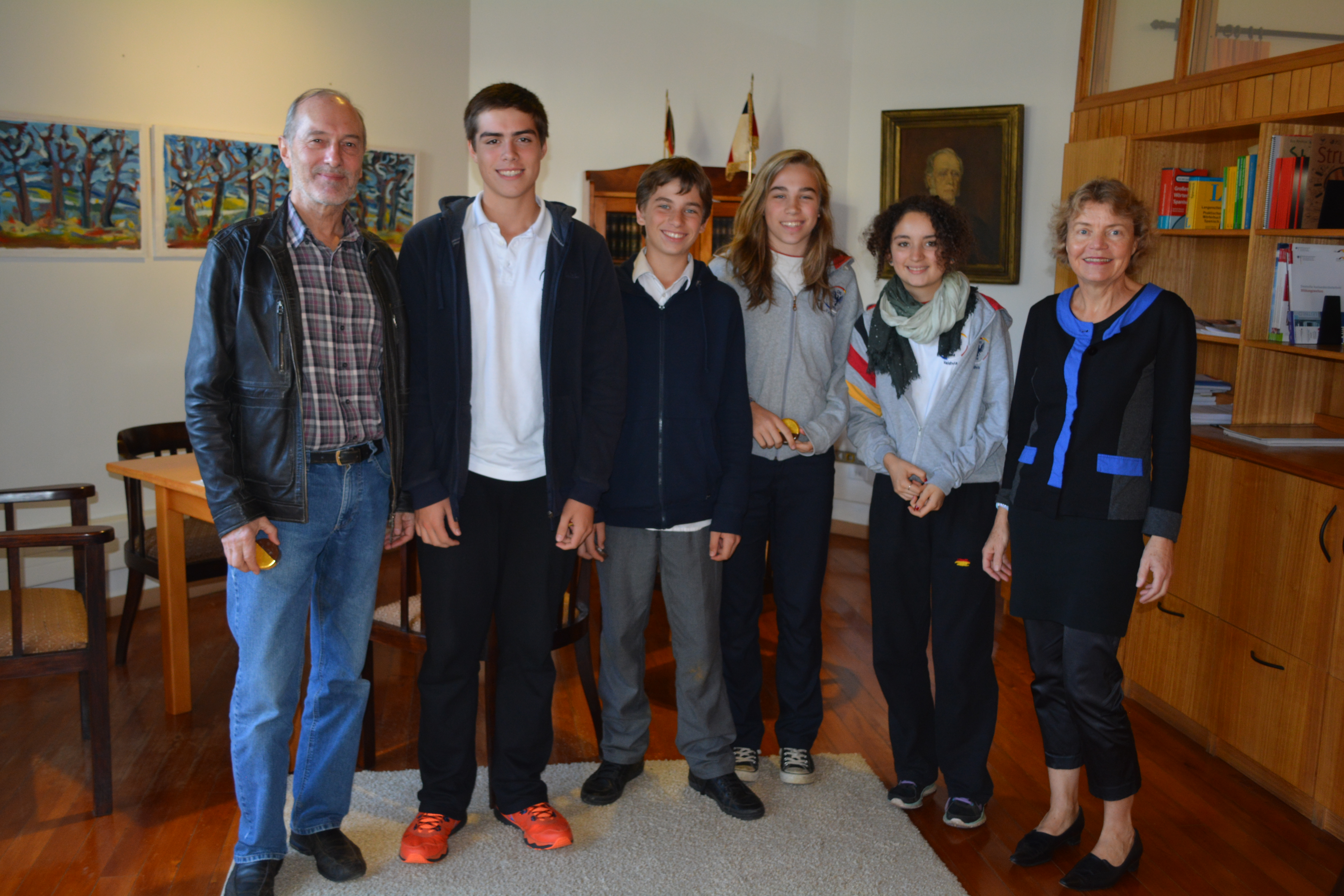 Unsere Schulleiterin Liske Salden beglückwünschte die vier Teilnehmer und ihren Lehrer zu ihrem Erfolg und betonte die sprachliche und inhaltliche Leistung der Schüler.