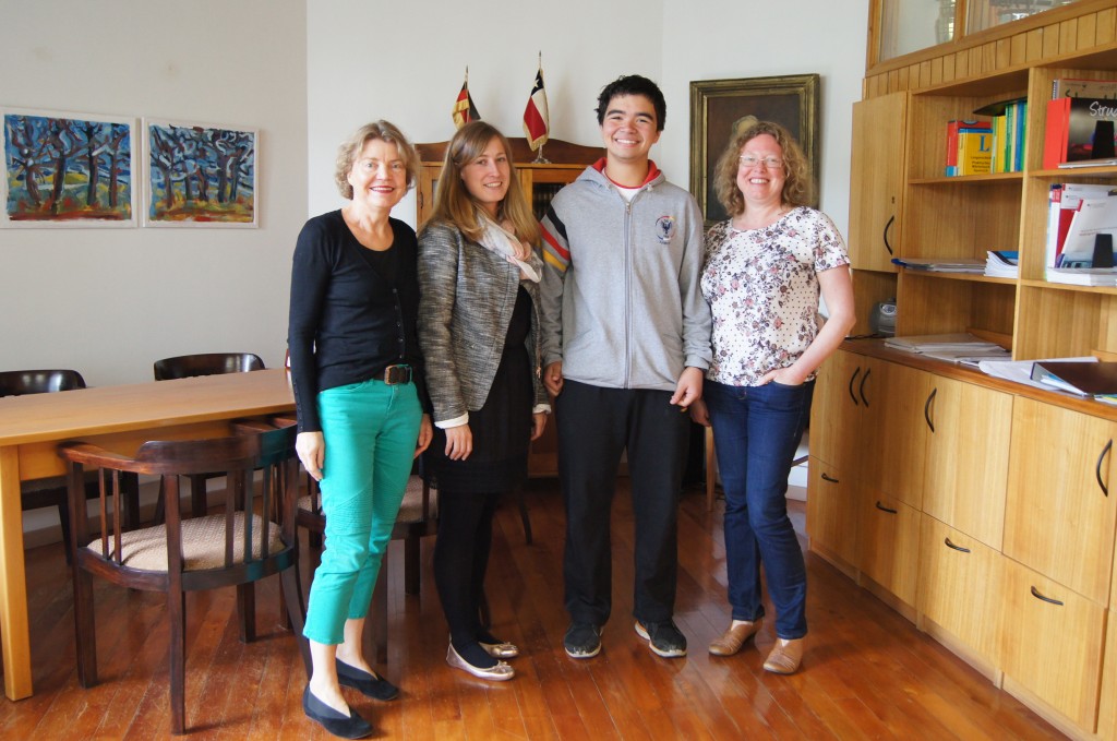Unsere Schulleiterin Liske Salden und die Deutschfachleiterin Silke Heckele beglückwünschten unseren Schüler und seine Deutschlehrerin Susann Reiner zu seinem Erfolg.