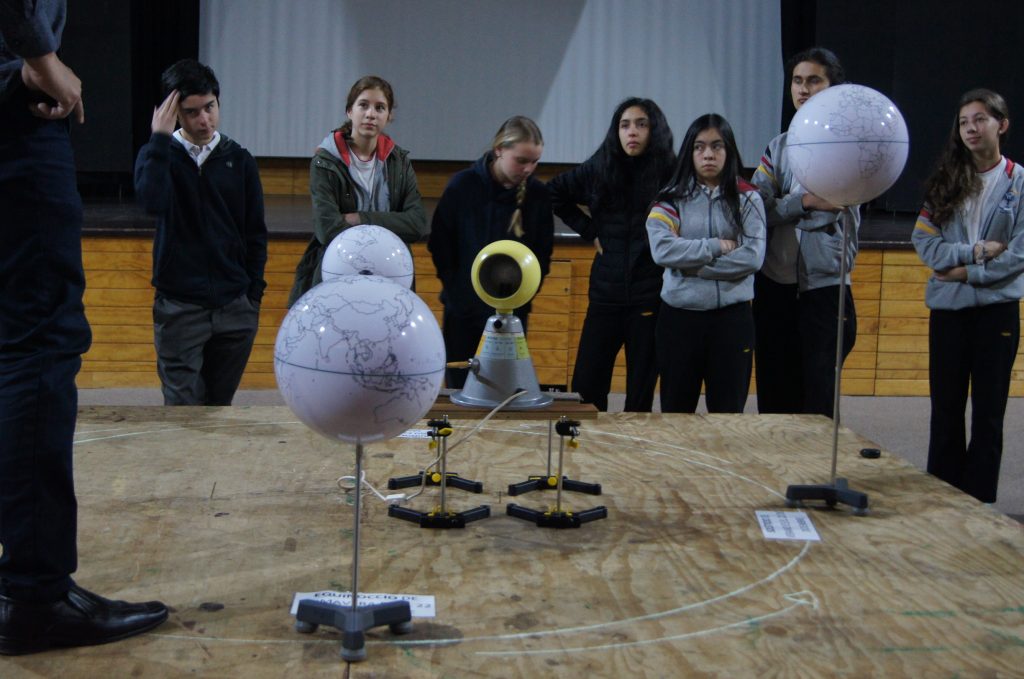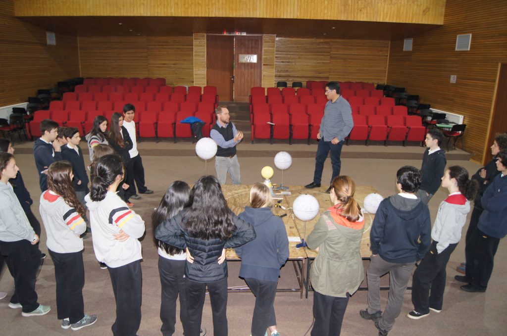 Una demostración de los movimientos relativos de la Tierra, el Sol y la Luna, con la participación de cursos de 2º Ciclo básico, fue la segunda actividad programada en la Semana de la Ciencia, que este año está a cargo del área de Astronomía del departamento.