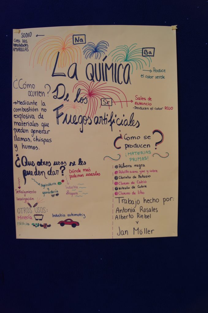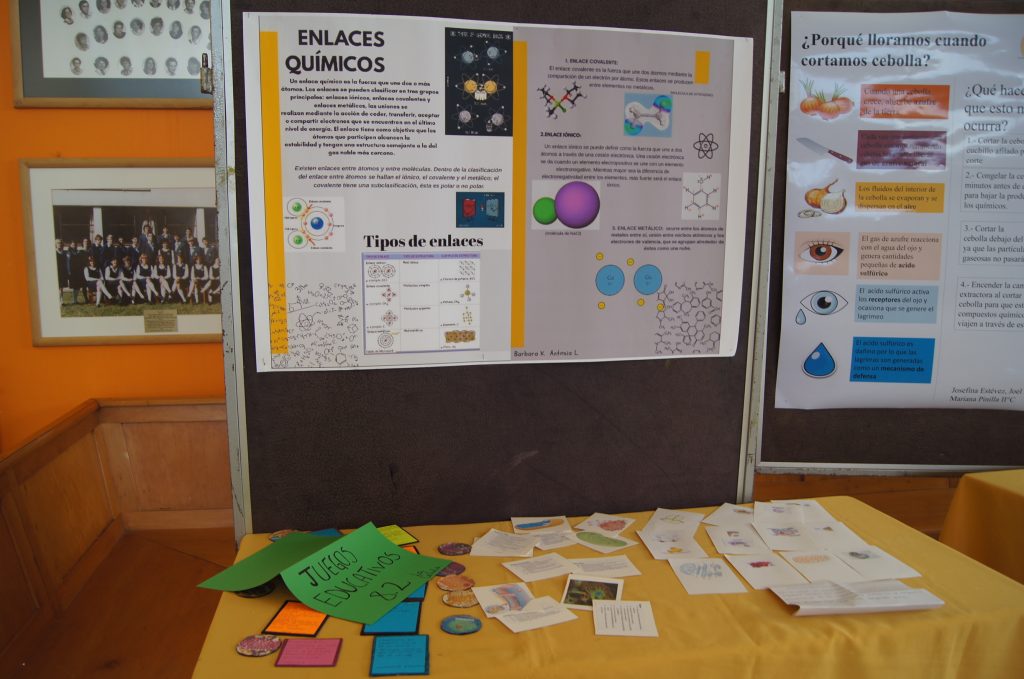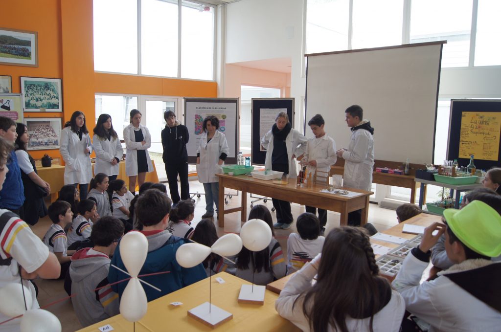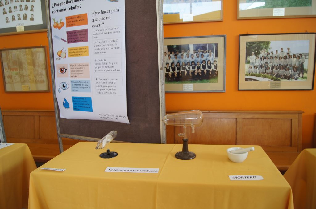 Desde el martes y hasta ayer, los cursos de Primer Ciclo Básico recibieron en sus salas a las profesoras de Química Constanza Rojos y Carolina Gómez, quienes mostraron una serie de entretenidos experimentos a los alumnos. Durante toda la semana se mantuvo una muestra de artículos utilizados en laboratorios de Química, antiguos y actuales, para finalizar ayer con una exposición de alumnos en el forum de Educación Media, a la que asistieron algunos cursos por turno.