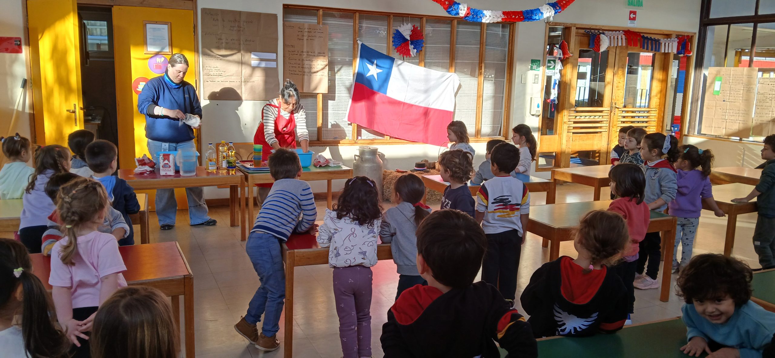 04.09.2025 En el marco de nuestras celebraciones nacionales, alumnos de Preescolar elaboraron sopaipillas guiados por las educadoras del nivel.