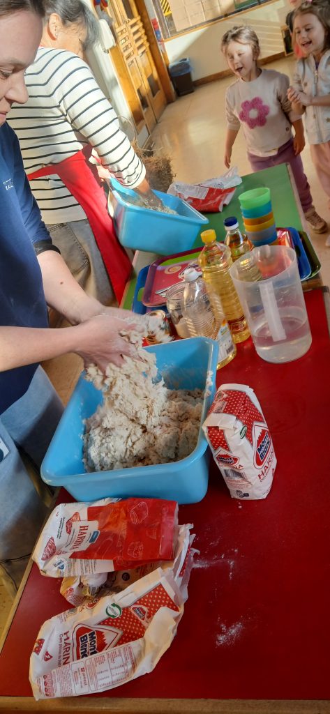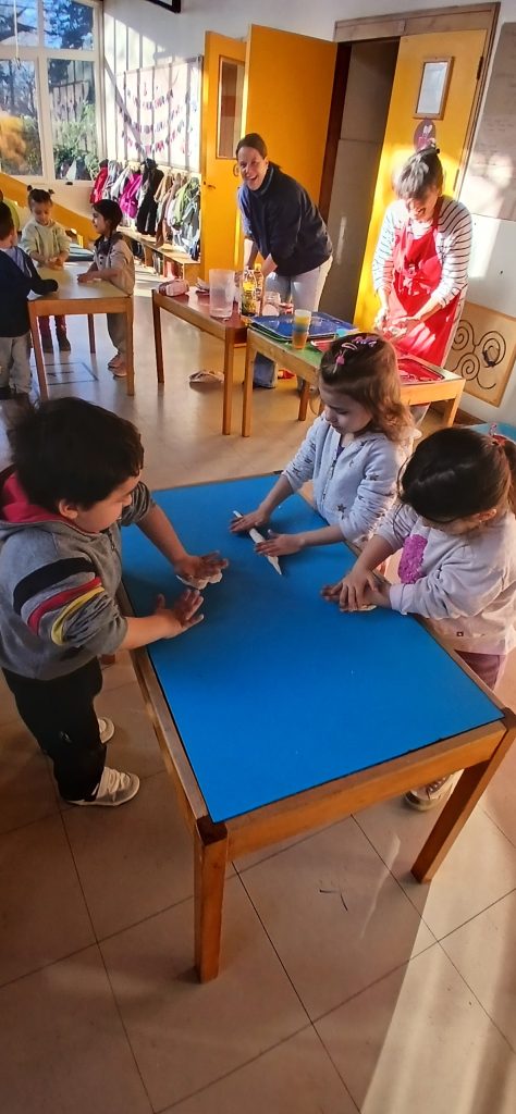 Durante la jornada, los estudiantes exploraron los ingredientes, amasaron y modelaron la masa, y observaron el proceso de cocción con acompañamiento adulto. La propuesta integró lenguaje, motricidad fina y convivencia, reforzando la autonomía y el respeto por las normas del curso.