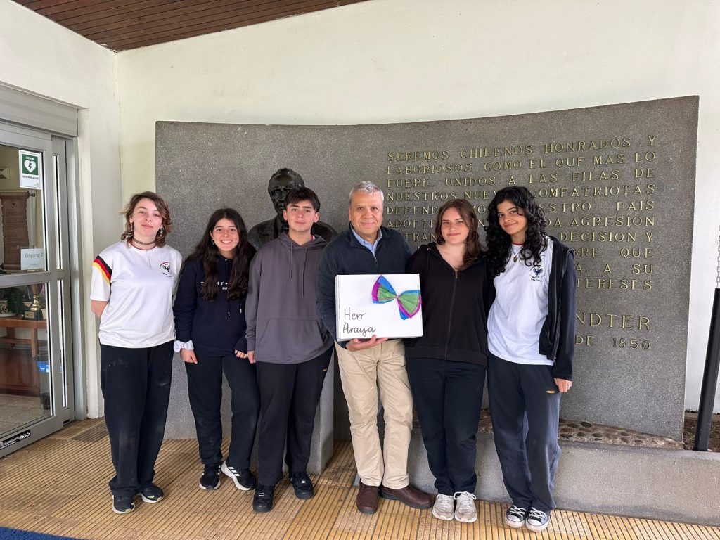 „Heute verabschieden wir uns von zwei Menschen, die unsere Schulgemeinschaft nachhaltig geprägt haben: Mario Andrés Carrasco und Jorge Araya. Als Schülervertretung möchten wir unsere Dankbarkeit, Bewunderung und Sympathie der gesamten Gemeinschaft für die beiden zum Ausdruck bringen.