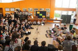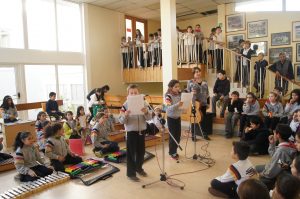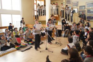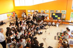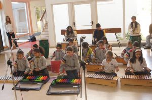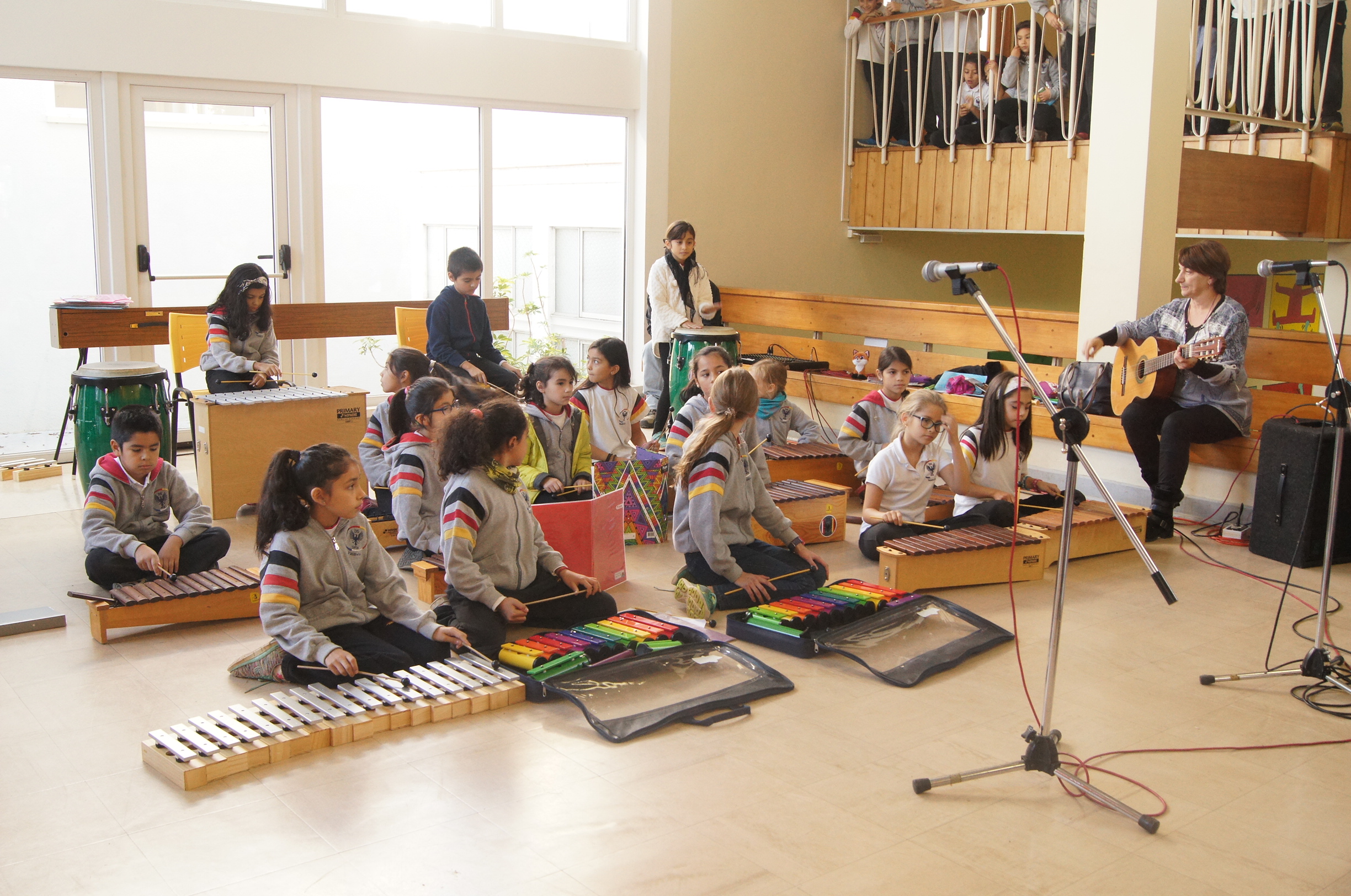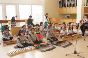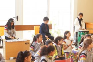 Dos alumnos leyeron una reseña sobre la vida de Violeta Parra, multifacética artista a la que está dedicada la Semana de la Educación Artística en nuestro colegio. Los alumnos del Taller Instrumental, de 2º a 4º básico, interpretaron tres temas, el último “Run Run” de la cantautora y folclorista nacional.