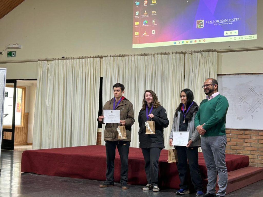 El equipo integrado por Alberto Scherson, Amelia Caro y Bárbara Ulloa, de I y II Medio, alcanzó el tercer lugar en los XXIV Juegos Matemáticos del Colegio San Mateo de Osorno. La competencia, reconocida a nivel regional, se desarrolló en tres etapas y concluyó con su final presencial el viernes 10 de octubre en dependencias del colegio organizador.