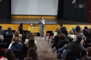La orientadora del Staff, profesora Mariane Rubilar, introdujo antes de la charla principal la participación de Ignacia “Nachi” Picas, quien presentó a los asistentes su libro “Ser feliz es gratis”, relatándoles también un poco de su experiencia. Ella tiene sólo 21 años, pero en su corta vida ha logrado destacar por su defensa a los derechos de las personas con capacidades diferentes. Nachi, como le gusta que le digan, es ciega de nacimiento, y fue la alumna que, al no poder rendir el SIMCE pues no se contaba con el instrumento en Braille, llegó hasta la Presidencia de la República para instalar el tema en la agenda nacional. A partir de ese momento, ha sido permanentemente una líder destacada en el ámbito de la inclusión.