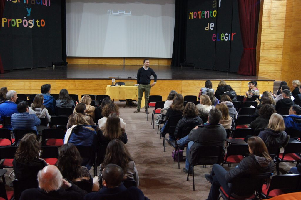 El profesional abordó con los padres el tema “Adolescentes del siglo XXI”, donde trató el contexto de la juventud en los tiempos actuales; las características y los desafíos a los que se ven enfrentados los jóvenes al momento de tomar decisiones; cómo conocer y empatizar con los hijos, y las maneras de facilitar la labor parental de una forma conjunta entre padres e hijos a la hora de decidir una formación profesional.