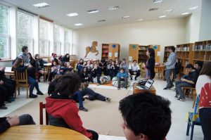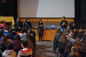 Ayer jueves la actividad estuvo totalmente dedicada a los alumnos, comenzando por la charla del mismo profesional para los estudiantes de I a IV medio, de una manera muy amena y distendida, con la que los jóvenes se sintieron muy cómodos. La jornada continuó con actividades por niveles, desarrolladas por profesionales invitados y del Staff. Los I medios trabajaron en la Sala de Alemán, con los psicólogos Viviana Fullá y Alexis Audicio; los II medios estuvieron con la invitada Jimena Besoaín y nuestra psicopedagoga Helga Concha, trabajando en Biblioteca el tema “Rebeldía Competente”; los III medios se quedaron con Sergio Gómez en el Auditorium para desarrollar el tema “Identificando factores de éxito y sentido para nuestro futuro”; finalmente, los IV trabajaron “La fuerza e inspiración”, a cargo del profesional invitado Guillermo Cuéllar, en la Sala de Educación Artística.