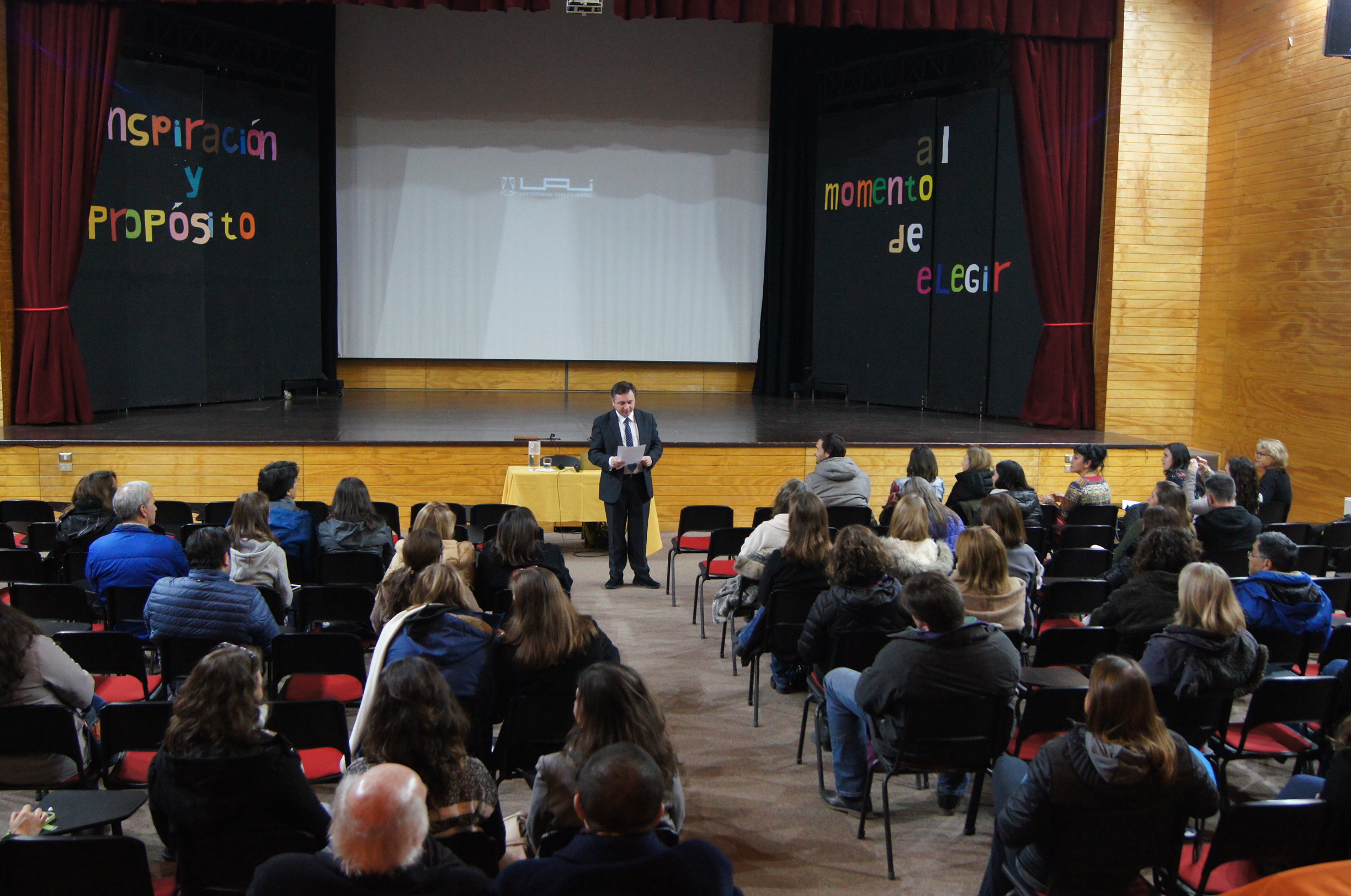 Nuestro Staff de Apoyo Académico organizó por tercer año consecutivo la Jornada Vocacional para alumnos de Educación Media, con la colaboración del Centro General de Padres y Apoderados de nuestro Instituto. La actividad comenzó el miércoles 1º con una charla para padres, realizada por el principal expositor invitado, el psicólogo Sergio Gómez. Nuestra Rectora dio la bienvenida a los asistentes, quienes también recibieron el saludo del presidente del CGPA, Pedro Guerra.
