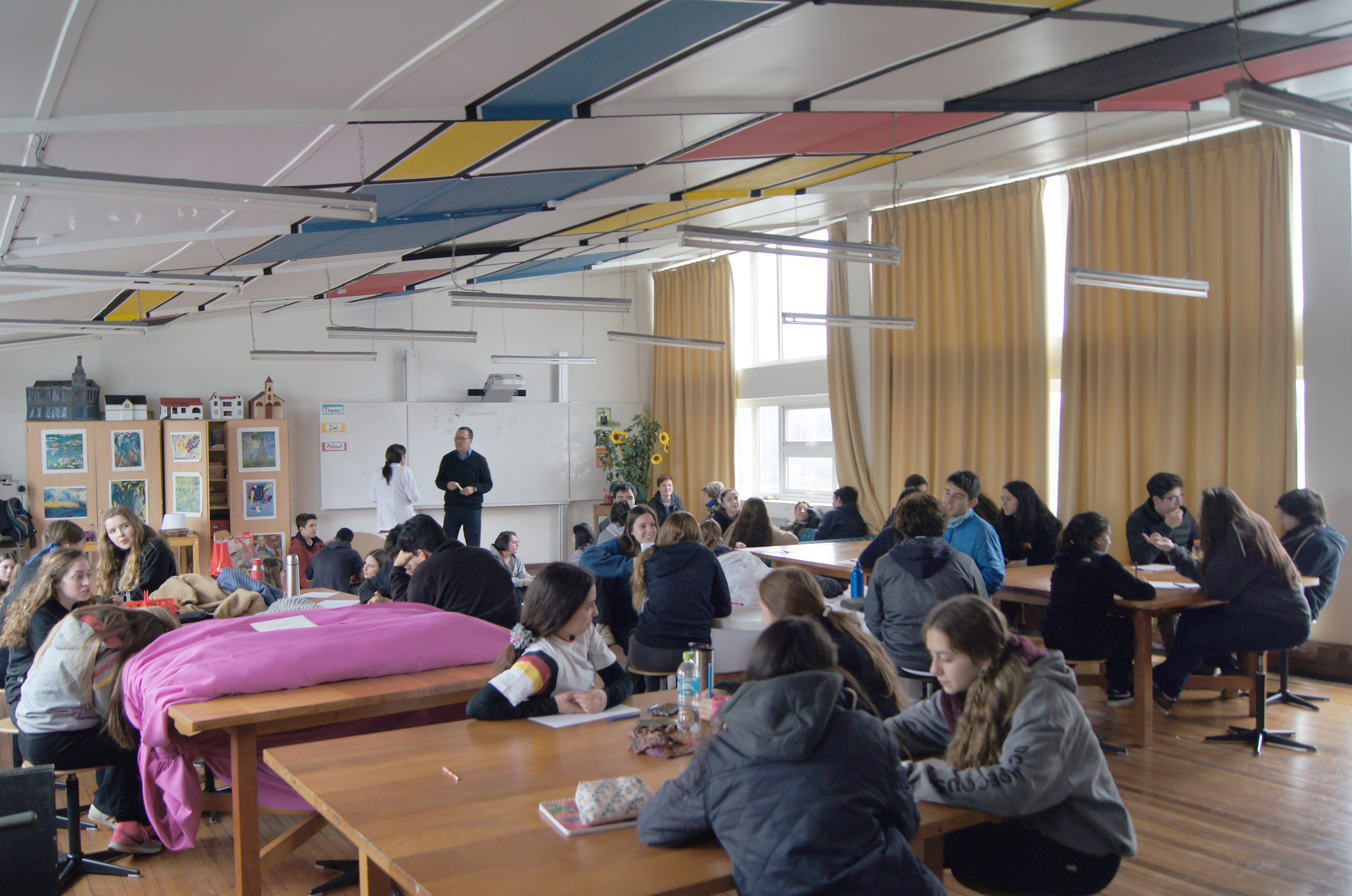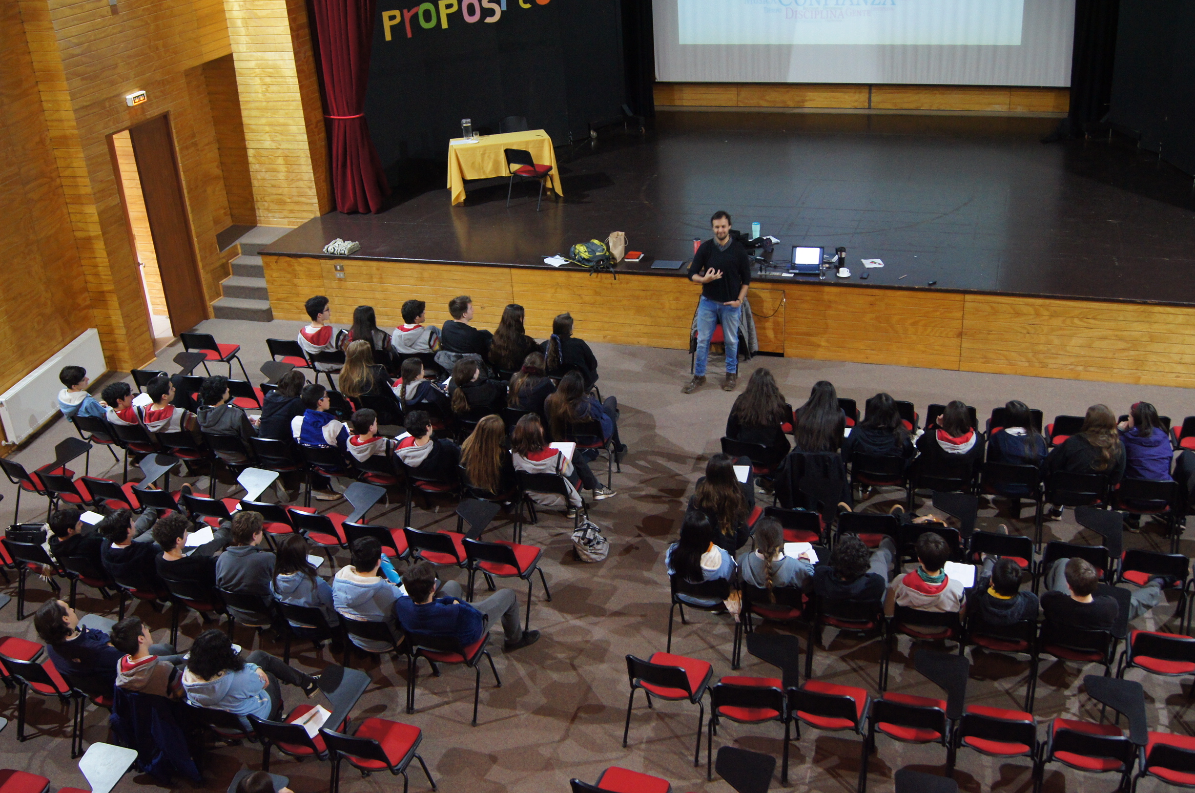 Ayer jueves la actividad estuvo totalmente dedicada a los alumnos, comenzando por la charla del mismo profesional para los estudiantes de I a IV medio, de una manera muy amena y distendida, con la que los jóvenes se sintieron muy cómodos. La jornada continuó con actividades por niveles, desarrolladas por profesionales invitados y del Staff. Los I medios trabajaron en la Sala de Alemán, con los psicólogos Viviana Fullá y Alexis Audicio; los II medios estuvieron con la invitada Jimena Besoaín y nuestra psicopedagoga Helga Concha, trabajando en Biblioteca el tema “Rebeldía Competente”; los III medios se quedaron con Sergio Gómez en el Auditorium para desarrollar el tema “Identificando factores de éxito y sentido para nuestro futuro”; finalmente, los IV trabajaron “La fuerza e inspiración”, a cargo del profesional invitado Guillermo Cuéllar, en la Sala de Educación Artística.