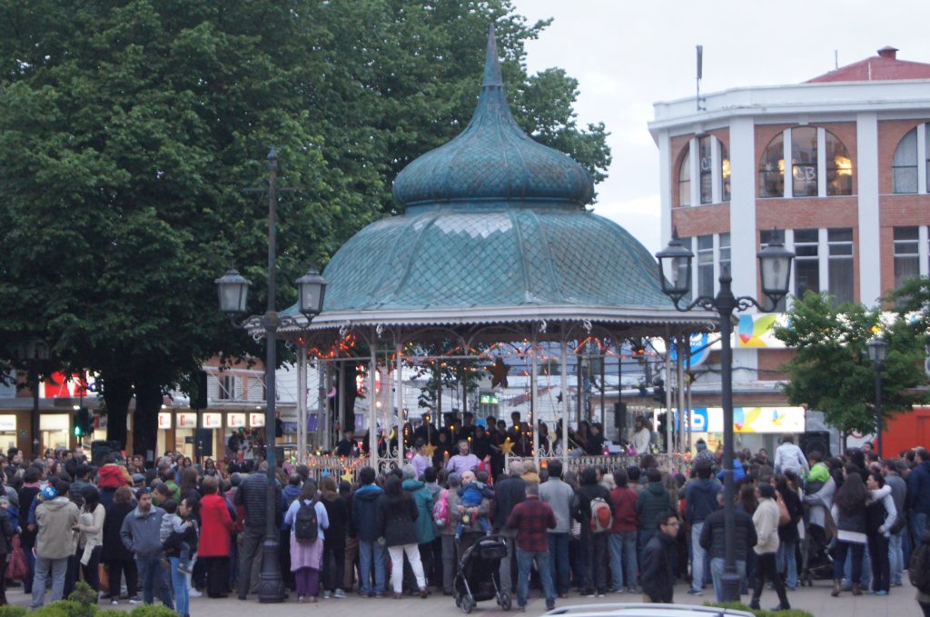 A partir de las 20:20 hrs. se congregaron los niños frente a la pérgola de la Plaza de la República, para participar de la Fiesta de los Faroles. En esta ocasión, luego de que la Rectora, Liske Salden, y la Directora del Preescolar, Soledad Alveal, dieran la bienvenida a los presentes, se realizó la representación de la escena en la que Martín de Tours regresa de la guerra y comparte su capa con un mendigo que se encuentra a punto de morir de frío. Este episodio es el que se relata como el más importante en la vida del santo, ya que marcó el inicio de su vida religiosa. Antes de llegar a ese punto cúlmine, Yerko Toliç, profesor de Teatro en nuestro Instituto, como el padre de Martín, y el alumno Vicente Lillo, personificando al santo, representaron la vida anterior que tuvo Martín, como hijo de un soldado, cuyo padre quería que siguiera sus pasos.