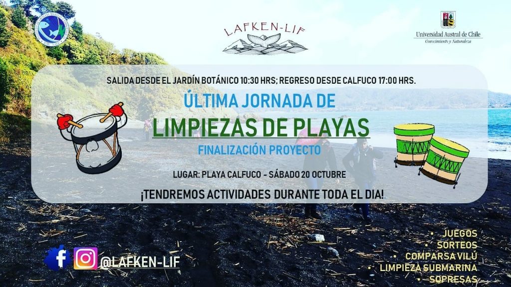 Para mañana sábado está programada la última limpieza de playas en el sector de Calfuco. La salida es desde el Jardín Botánico de la UACh, a las 10:30, con retorno desde Playa Calfuco a las 17:00 hrs.