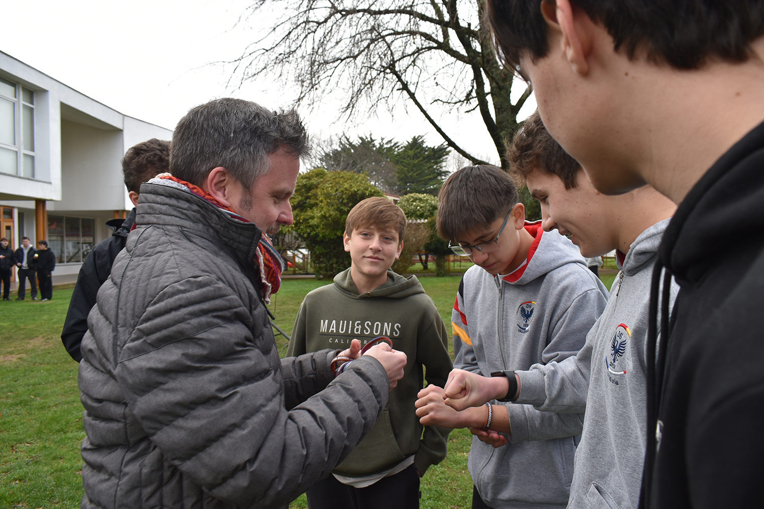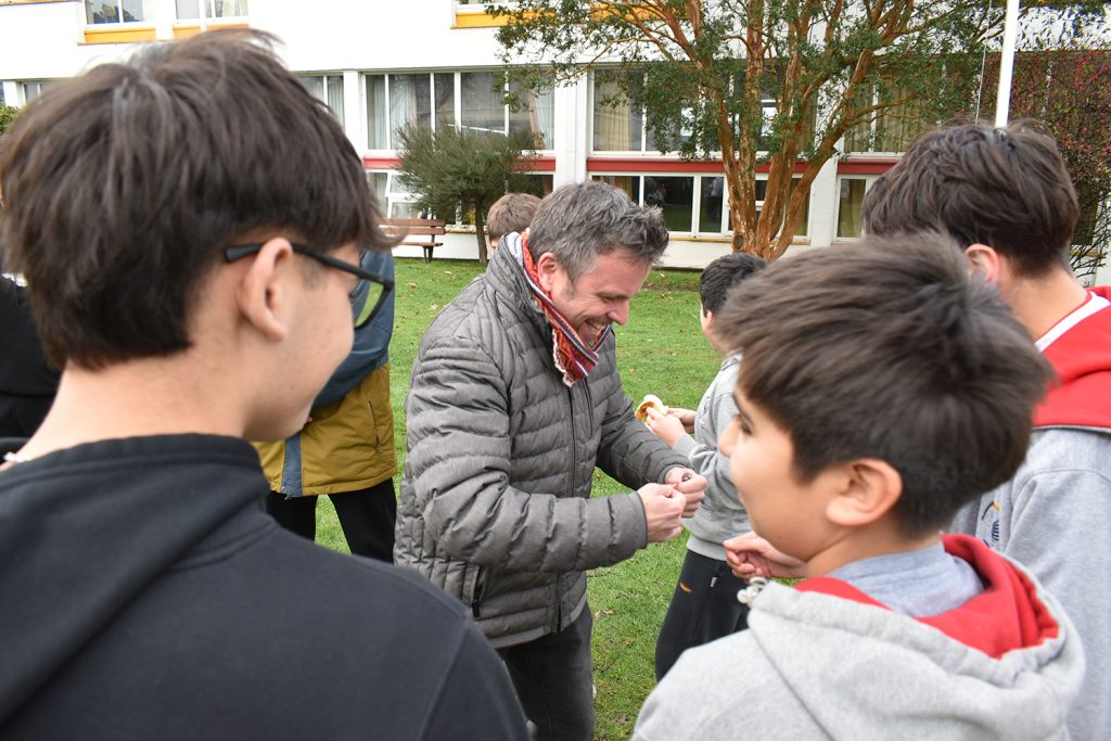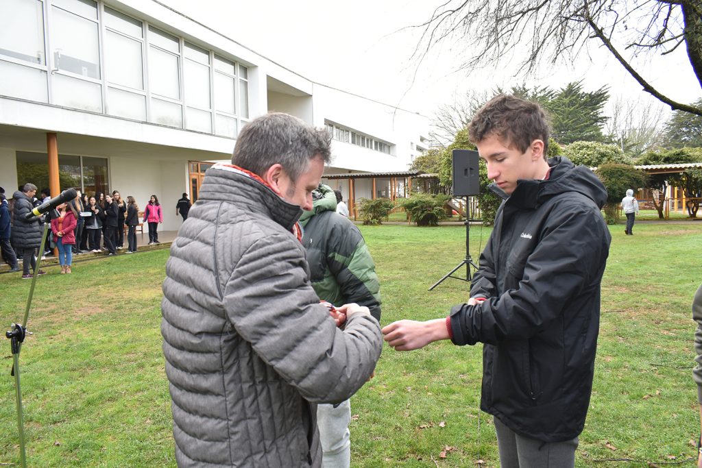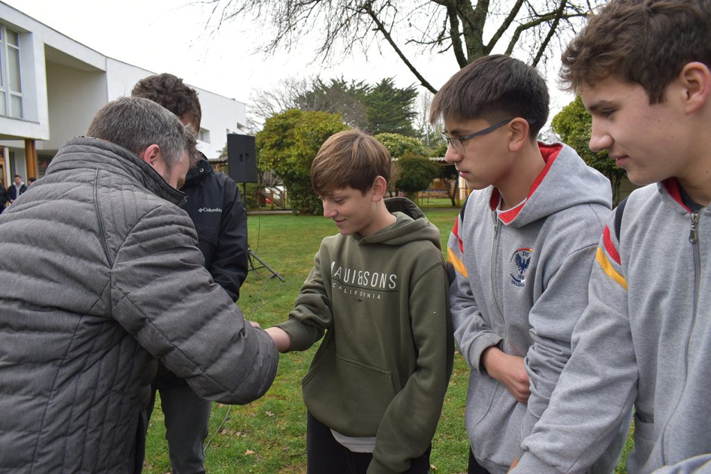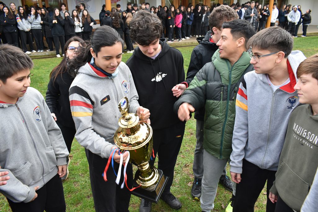 Heute Morgen wurde die Mannschaft unter der Anwesenheit unseres Schulleiters Markus Biber und der Sportfachleiterin Bárbara Lillo von unserer Schülerschaft mit begeistertem Applaus im Schulhof empfangen.
