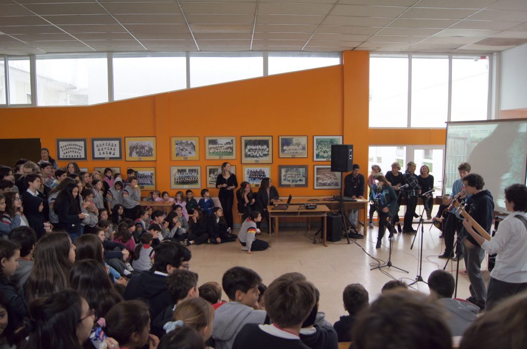 Para continuar con las actividades de celebración de la Semana de la Educación Artística, en el primer recreo se presentó un grupo de rock conformado por alumnos de III medio, que recibió grandes aplausos de sus compañeros y profesores en el fórum de Educación Media. A continuación, una sorpresa que fue gratamente recibida por los espectadores: con una coreografía se mostró un grupo de algunas funcionarias que asisten a zumba. Profesoras, también la Rectora, administrativas y educadoras fueron vitoreadas por los estudiantes luego del baile con el que se sumaron a las actividades de la semana. Para finalizar la corta presentación durante el recreo, se mostró el videoclip realizado por alumnos de III medio.