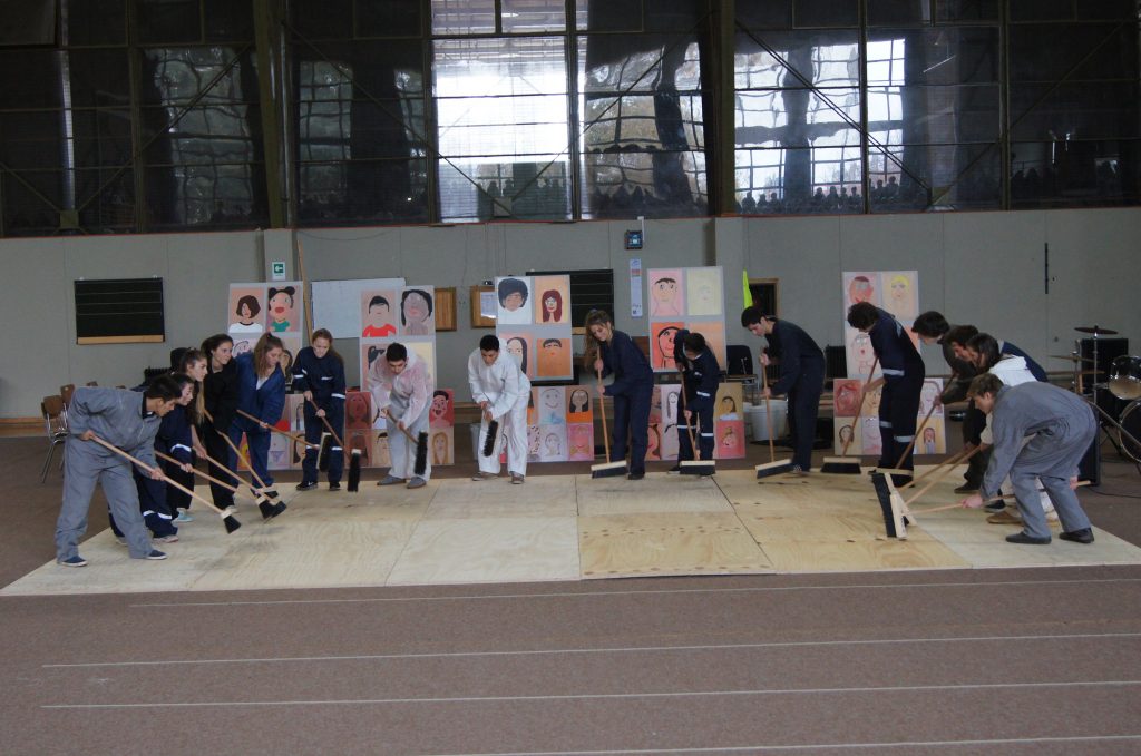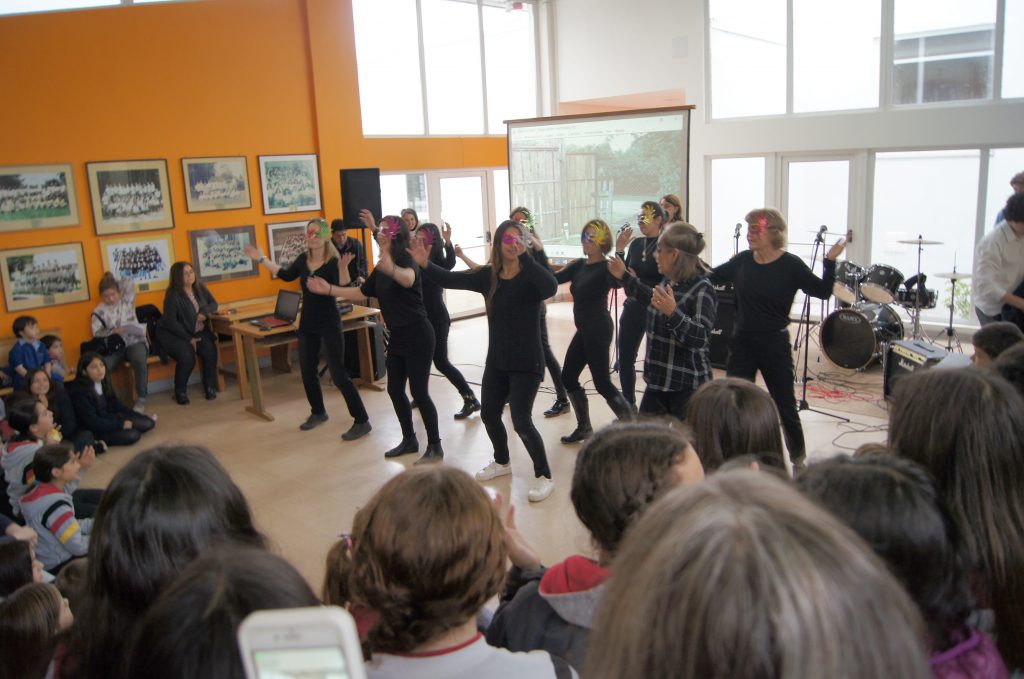 Al mediodía la cita era en el gimnasio 2, y las profesoras Renate Hagedorn y Alejandra Poblete señalaron los objetivos que tuvieron las actividades durante esta semana, instaurada a nivel mundial por la UNESCO, y que en esta ocasión se tituló “La expresión de la diferencia”, con el fin de reflexionar acerca de la diversidad como una fuente de aprendizaje. Nuestra Rectora también saludó a los presentes y agradeció el esfuerzo de todos los profesores del área artística del colegio y en especial a las jefas de los Departamentos de Artes Visuales y de Educación Musical, Natalia Sepúlveda y Renate Hagedorn, respectivamente.