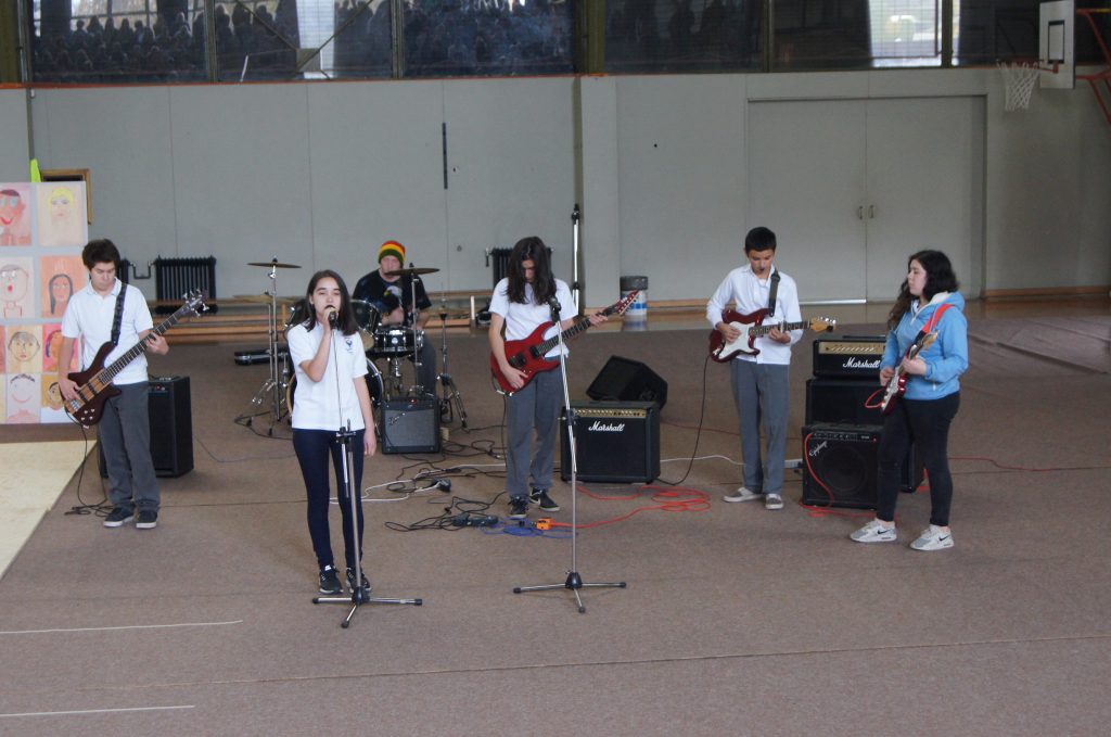 Para cerrar la Semana de la Educación Artística, la banda de rock del colegio, que nos representará en el próximo Festival en Alemán de Bandas Rock, se presentó con dos temas musicales, llevándose también fuertes aplausos de sus compañeros y profesores.