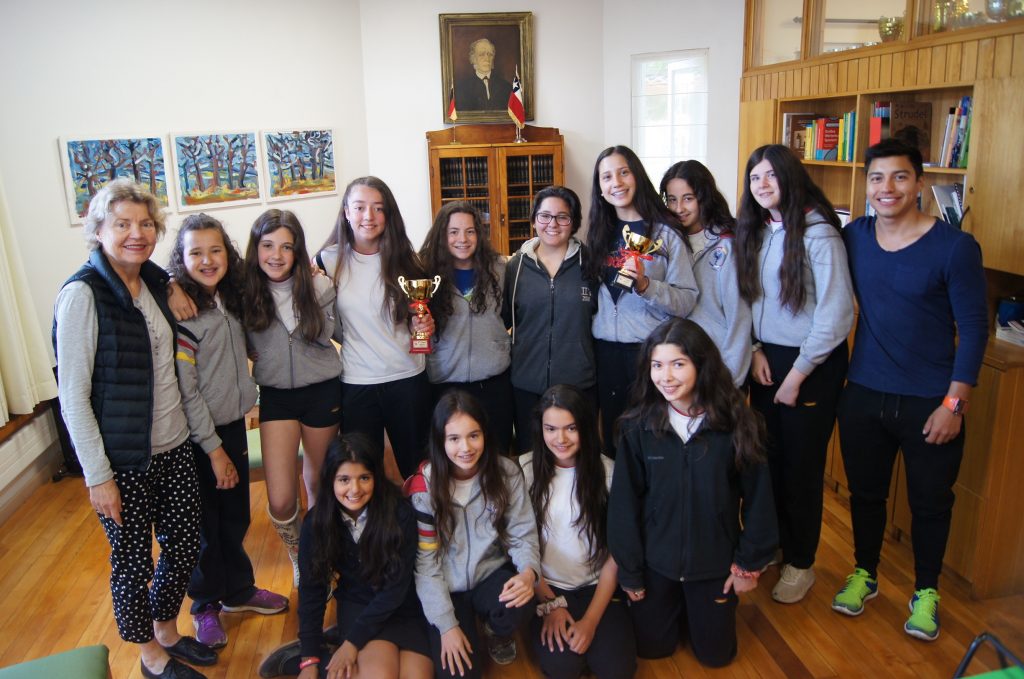 Las deportistas, acompañadas por el profesor Esteban Hormazábal, conversaron con Liske Salden, nuestra Rectora, en el primer recreo y le entregaron los últimos trofeos, logrados en la primera versión del Cuadrangular “Copa Instituto Alemán”, que se jugó una vez por semana entre el lunes 06 y el martes 21 de noviembre.