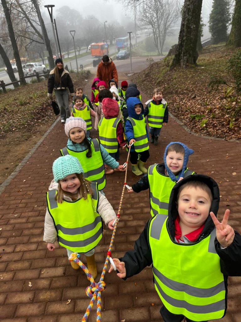 Acompañados por sus educadoras, los niños del nivel Spielgruppe iniciaron su paseo a pie desde nuestro Instituto hasta el Parque Santa Inés. Durante el trayecto, caminaron juntos siguiendo una cuerda, lo que les permitió mantenerse agrupados y seguros. Esta dinámica, además de reforzar la colaboración entre compañeros, les ayudó a respetar las normas de tránsito y los acuerdos establecidos previamente en la sala.