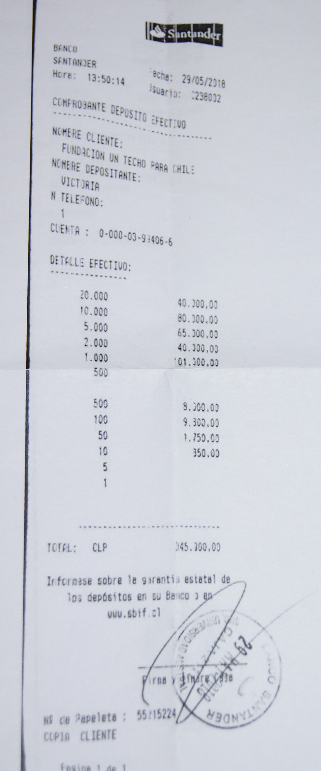 Junto a la carta venía también la fotocopia del comprobante de depósito del monto recaudado por nuestra comunidad.