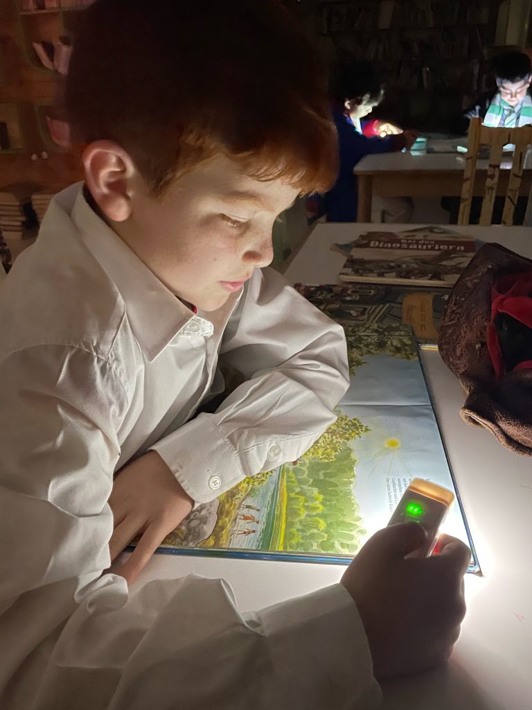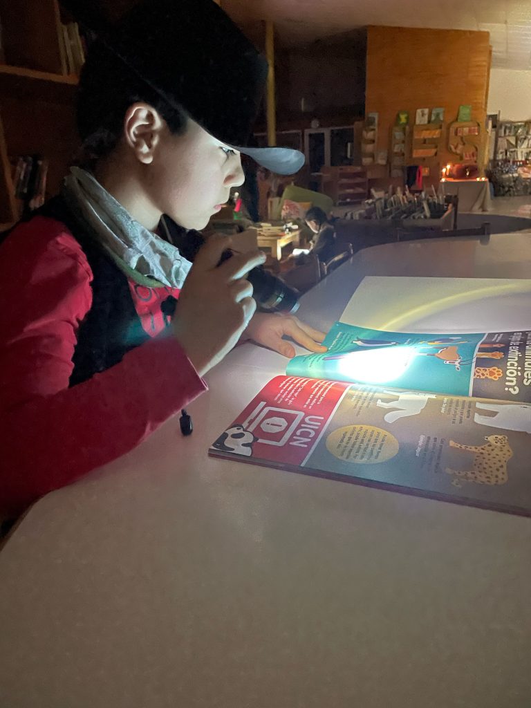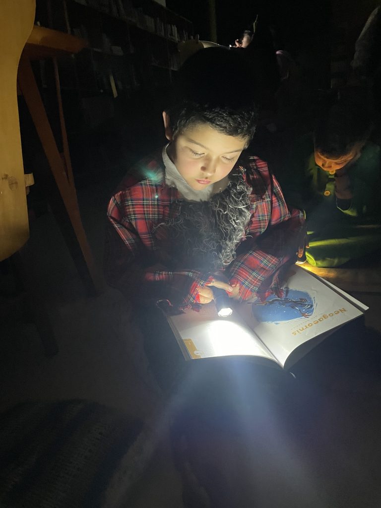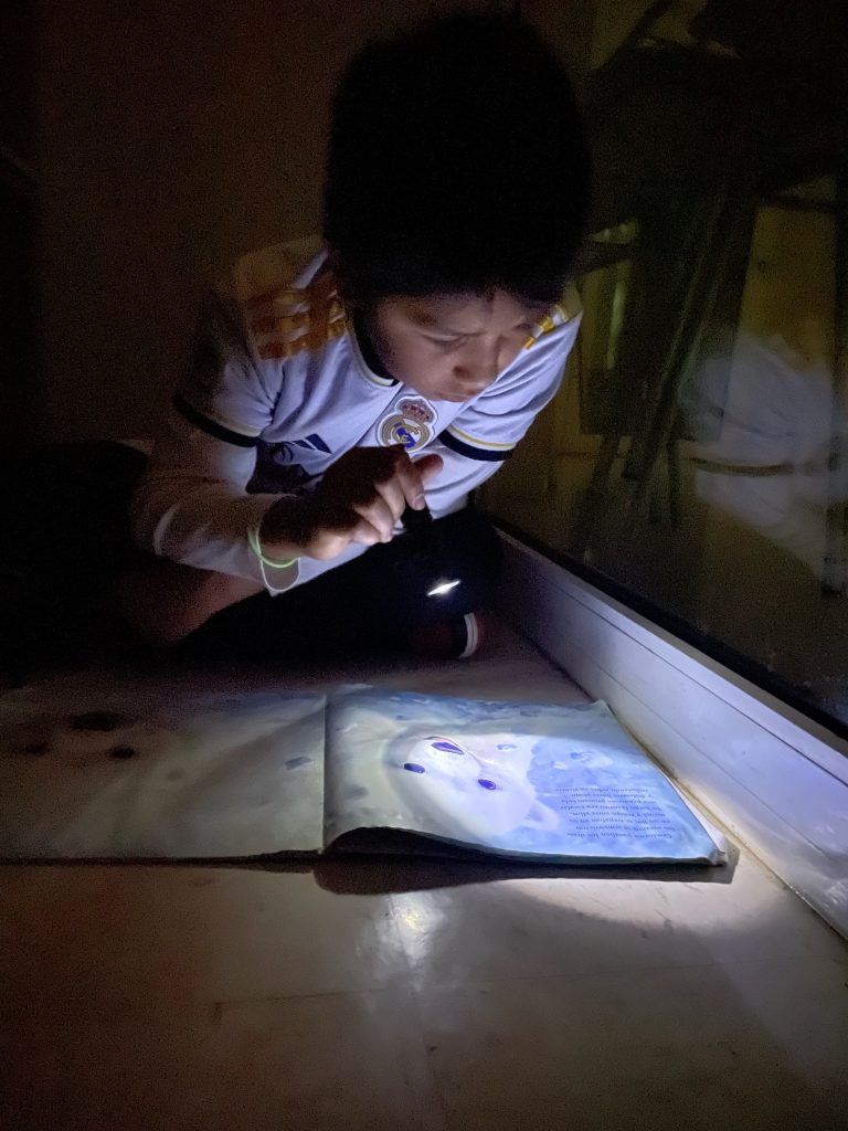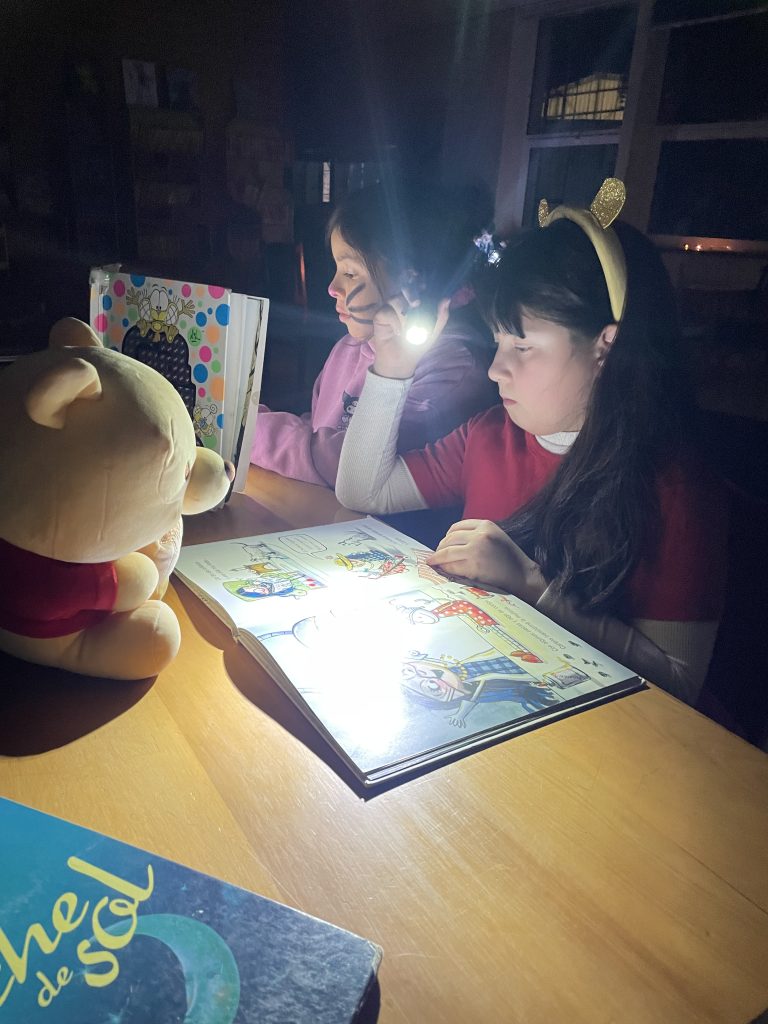 Después, con las luces apagadas y sólo sus linternas encendidas, los niños buscaron libros para leer en la oscuridad. Fue un momento especial, donde la lectura se vivió de forma distinta, más íntima, más mágica”.