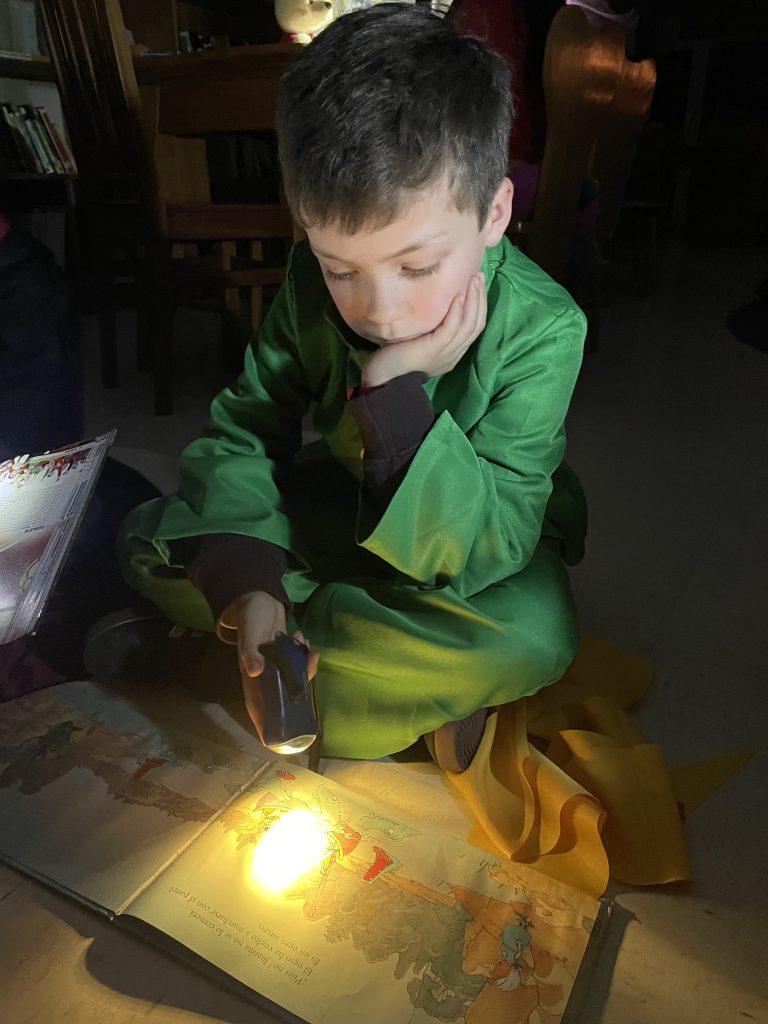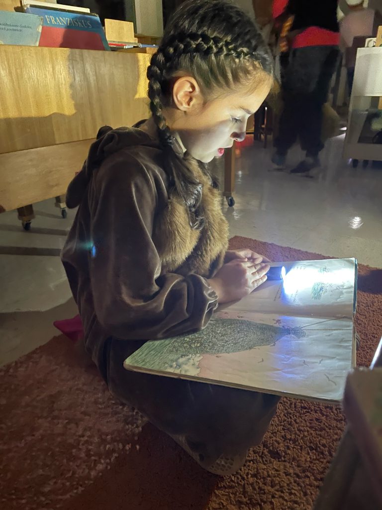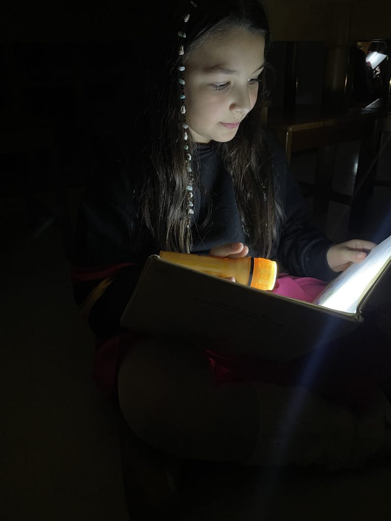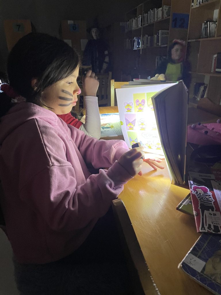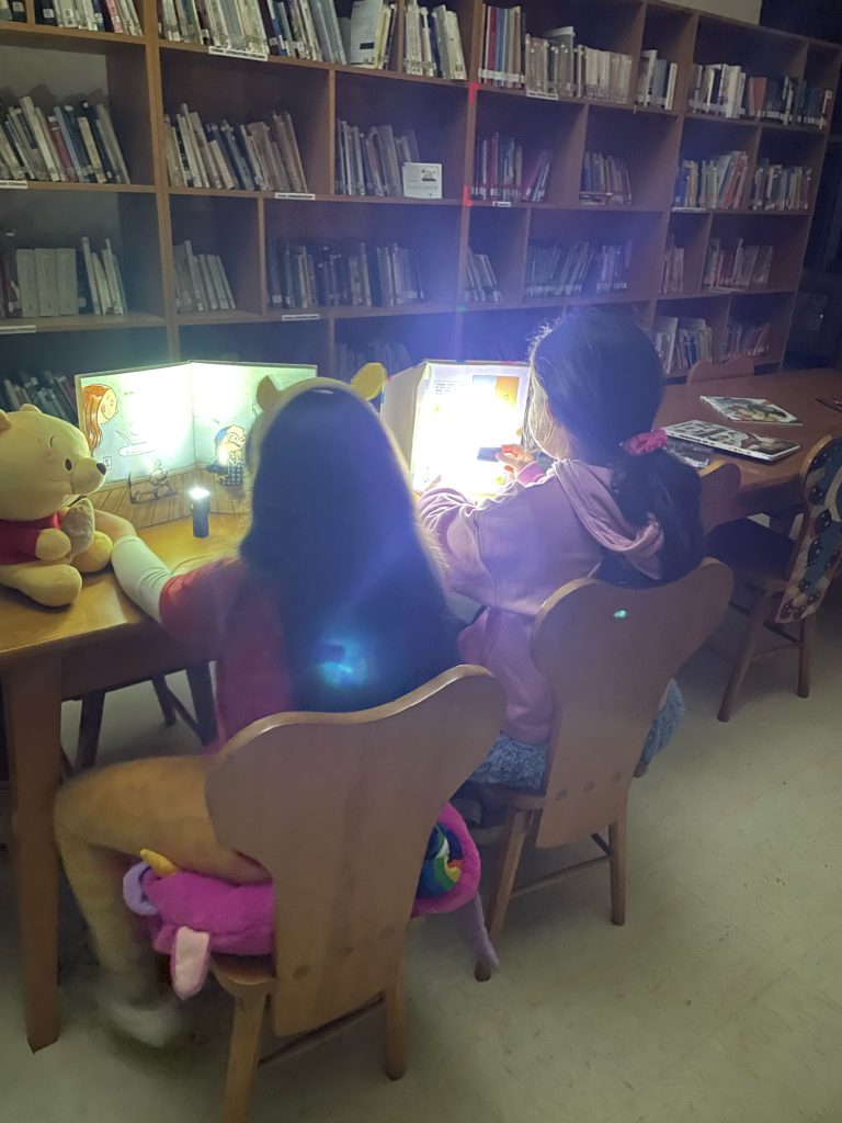 Después, con las luces apagadas y sólo sus linternas encendidas, los niños buscaron libros para leer en la oscuridad. Fue un momento especial, donde la lectura se vivió de forma distinta, más íntima, más mágica”.