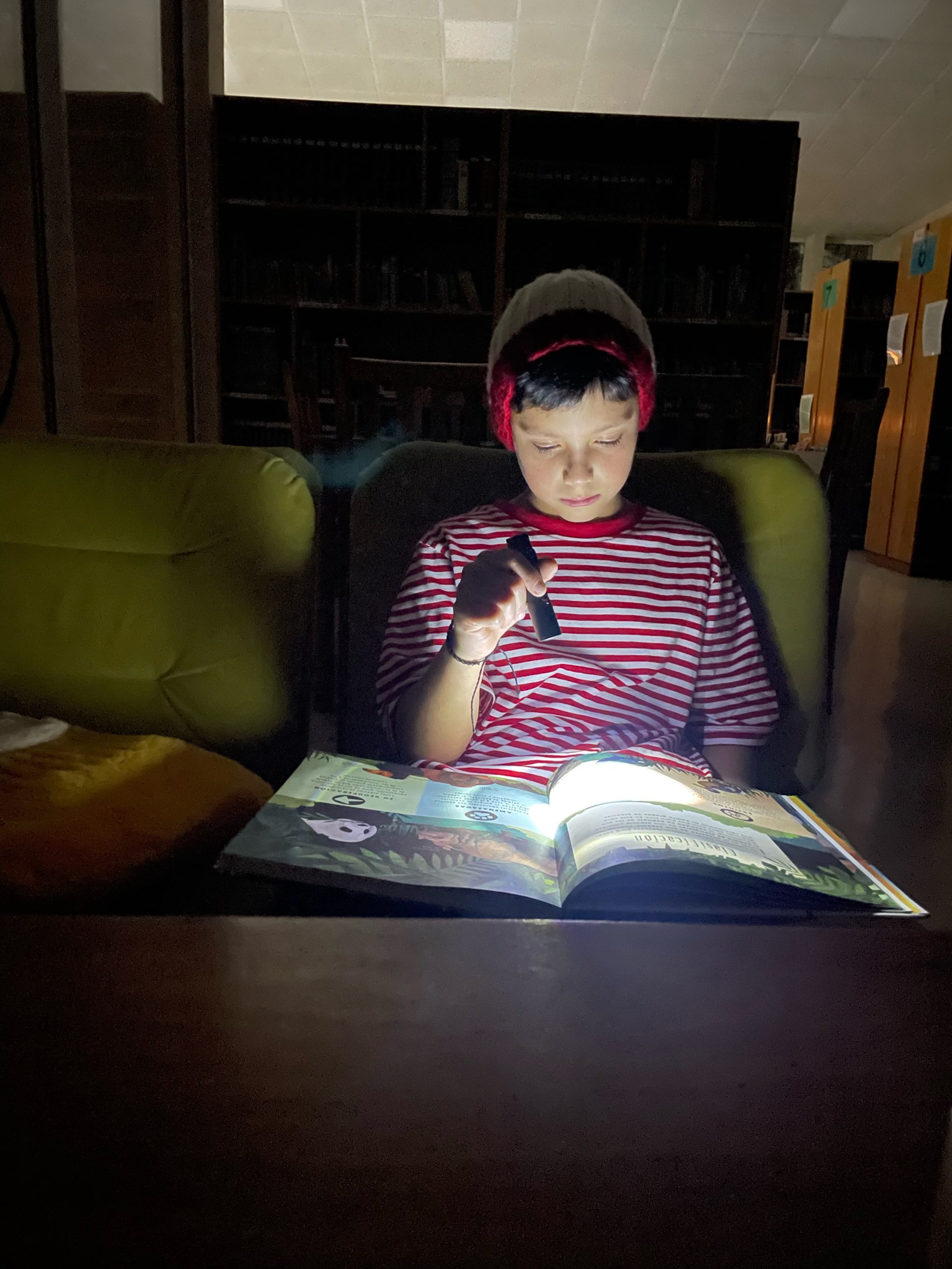 Después, con las luces apagadas y sólo sus linternas encendidas, los niños buscaron libros para leer en la oscuridad. Fue un momento especial, donde la lectura se vivió de forma distinta, más íntima, más mágica”.