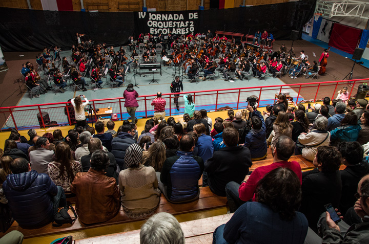 Während des Abschlusskonzertes wurden zunächst Beiträge der einzelnen Orchester präsentiert. Zum Abschluss bildeten sie ein großes Orchester, um unter der Leitung von Eduardo Brown und Jaime Pino gemeinsam den ersten Akt des „Concerto alla rustica“ von Antonio Vivaldi, den Walzer Nr. 2 von Dimitri Shostakóvich, das Stück „Land von innen“ des chilenischen Komponisten Jaime Barría sowie „Viva la Vida“ von Coldplay zu interpretieren.