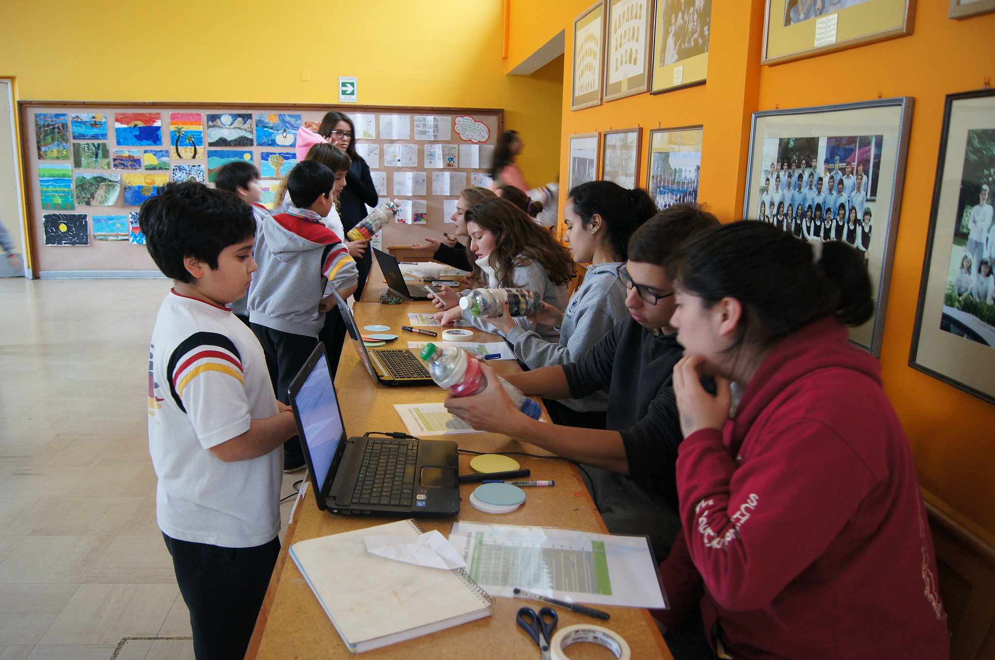 Die fertiggestellten Öko-Bausteine wurden Schülern der Klasse IV C übergeben. Diese hatten sich in der Oberstufenaula eingerichtet, um die Bausteine entgegenzunehmen, ihre Maße festzuhalten und die Anzahl der von jeder Klasse abgegebenen Bausteine zu dokumentieren.
