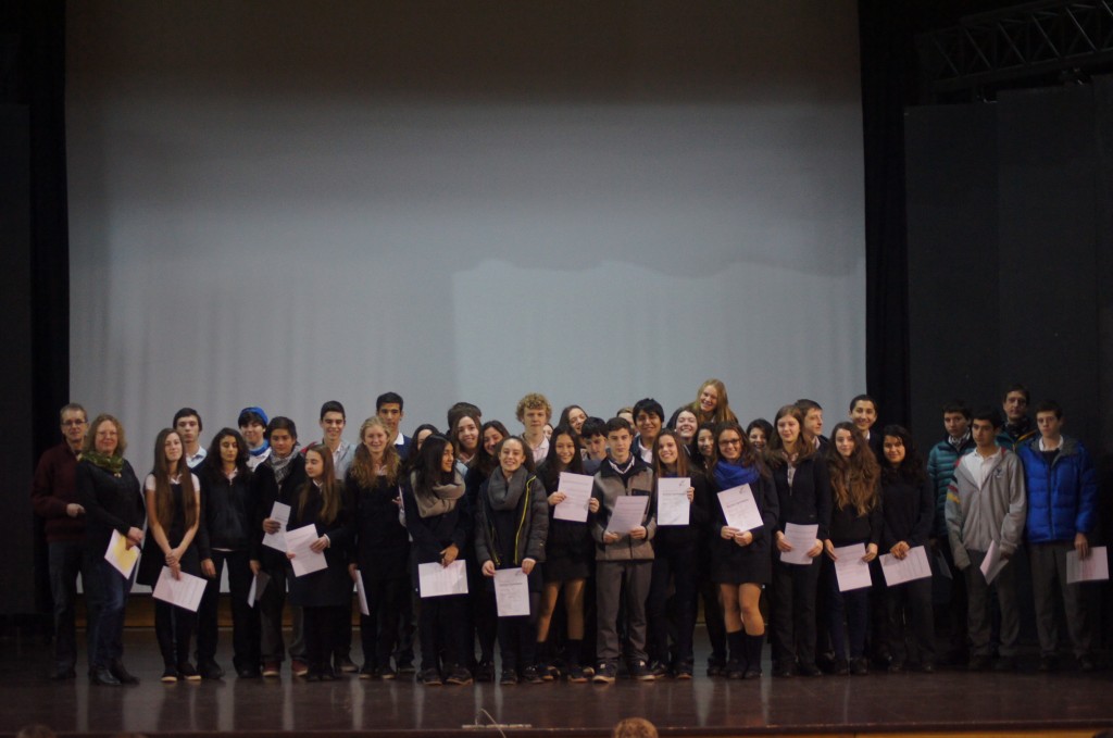 Unter der Anwesenheit ihrer Deutschlehrer, der Schulleiterin und ihrer Mitschüler, erhielten folgende Schüler am Montag ihr DSD I-Diplom, nachdem sie die Prüfung des Deutschen Sprachdiploms I, welches Deutschkenntnisse auf B1-Niveau des Europäischen Referenzrahmens für Sprachen testet, bestanden hatten: Josefina Avendaño, Javiera Berríos, Bernardita Boekemeyer, Joaquín Dünner, Josefina Enríquez, Gonzalo Guzmán, Antonia Harcha, Jiska Haupt, Roberto Lieewald, Sofía Möller, Ignacio Nicolás, Martín Niklitschek, Tanja Nimptsch, Pilar Ostalé, Josefina Pinilla, Isabella Pino, Magdalena Rojas, Josefina San Martín, Max Toro, Victoria Böttges, Florencia Fariña, Andrés González, Javiera Lillo, Javiera Medina, Alex Riebel, Valentina Rocco, Franco Rolleri, Gerti Schwarz, Diego Silva, Alexa Arancibia, Martín Altamirano, Federico Brummer, Antonia Contreras, Carlos Grob, Javiera Ide, Anne Marie Klein, Sergio López, Valentina Mohr, Paulina Ríos, Nicolás Sánchez und Benjamín Villegas.