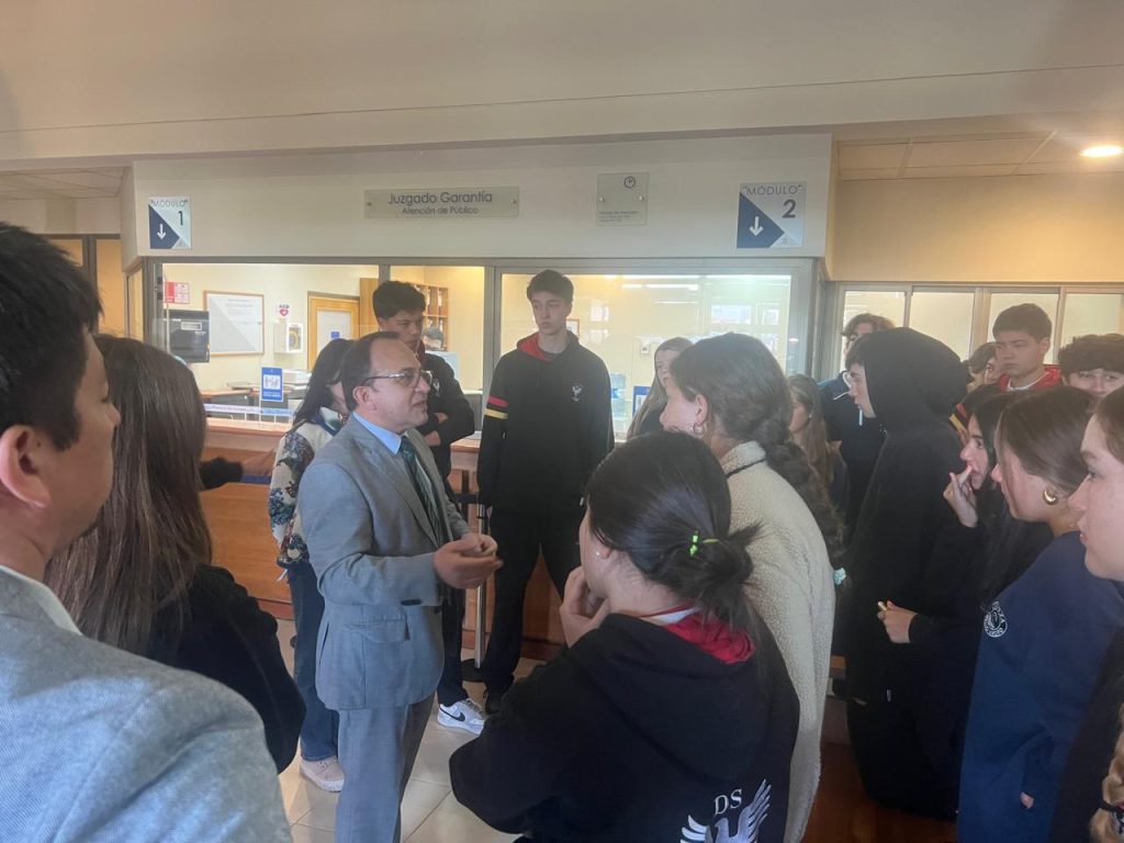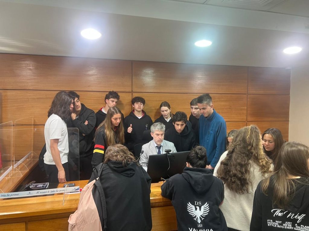 El martes 28 de octubre, los cursos III A y III B realizaron una salida pedagógica al Juzgado de Garantía de Valdivia. Durante la visita, los estudiantes observaron audiencias reales, recorrieron las dependencias del tribunal y sostuvieron un diálogo con el Juez Pablo Yáñez, quien respondió consultas y explicó de manera clara el rol del sistema judicial y la relevancia de respetar normas y procedimientos para asegurar una sociedad justa.