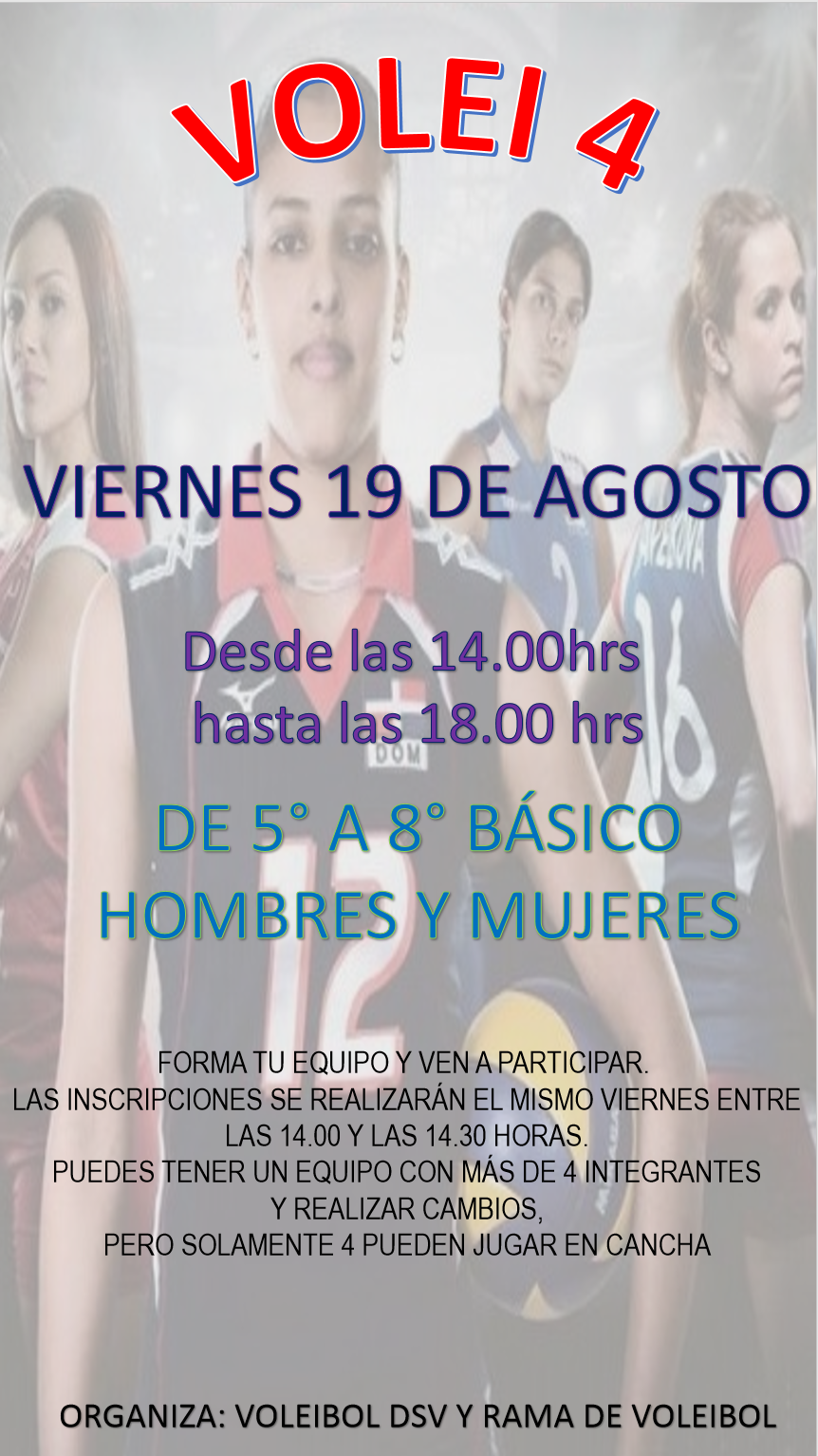 La actividad se desarrollará en los gimnasios del colegio y es organizada por la extraprogramática de Vóleibol y por la Rama de esta disciplina deportiva del Centro General de Padres y Apoderados.