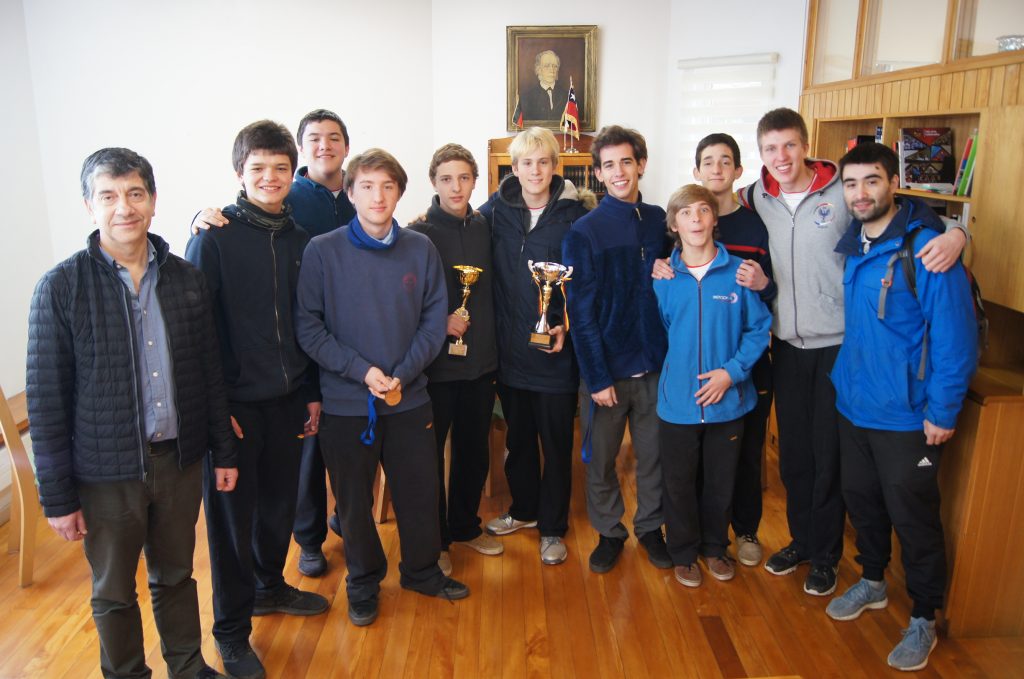 Durante el primer recreo los alumnos, en compañía de su profesor entrenados Marco Severo, hicieron entrega al Rector Alfredo Grosolli de las copas por el 4º lugar en la Liga Escolar de Vóleibol de Los Ríos, y por el 3º lugar en el Campeonato Nacional de Vóleibol de Colegios Alemanes “Cristóbal Rojas” jugado en San Felipe entre el 31 de mayo y el 02 de junio.