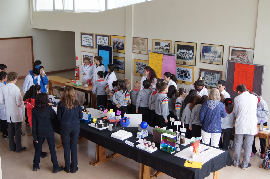 Unter den Ausstellungsstücken befinden sich Atom-, Atmosphären-, Geologie- und Anatomie-Modelle, die Schüler in den verschiedenen Fächern angefertigt haben.
